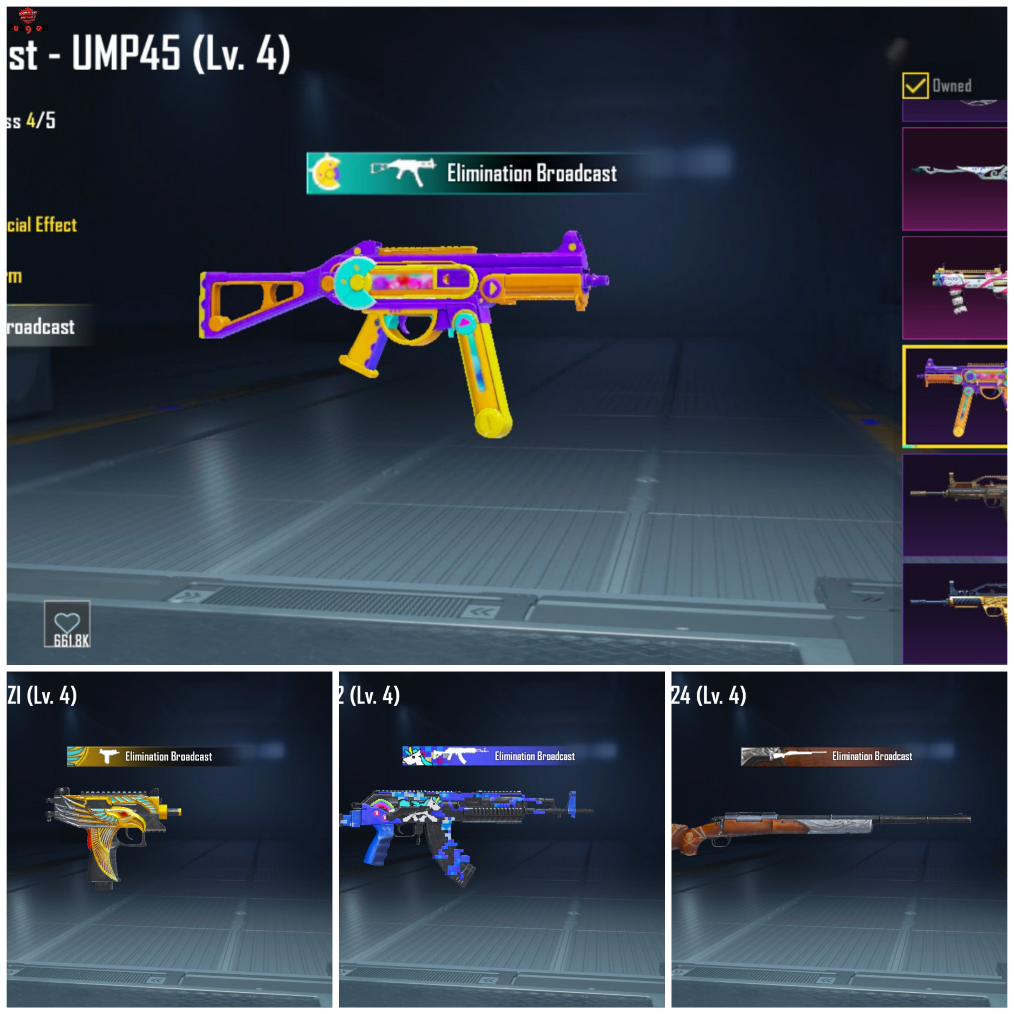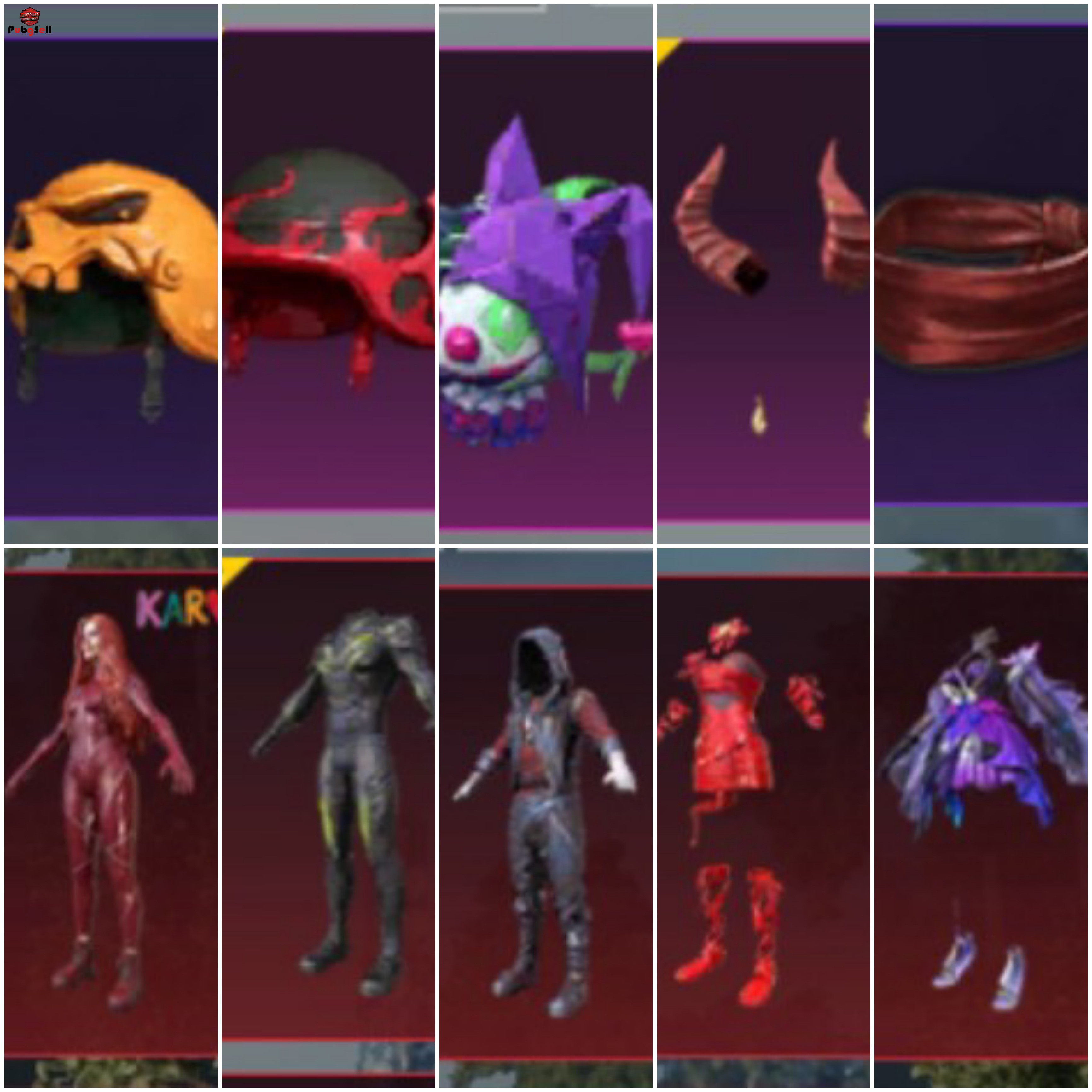 Description of special skins: یوزی فرعون کیل کیف جوکر شاخ شیطان چشم بند