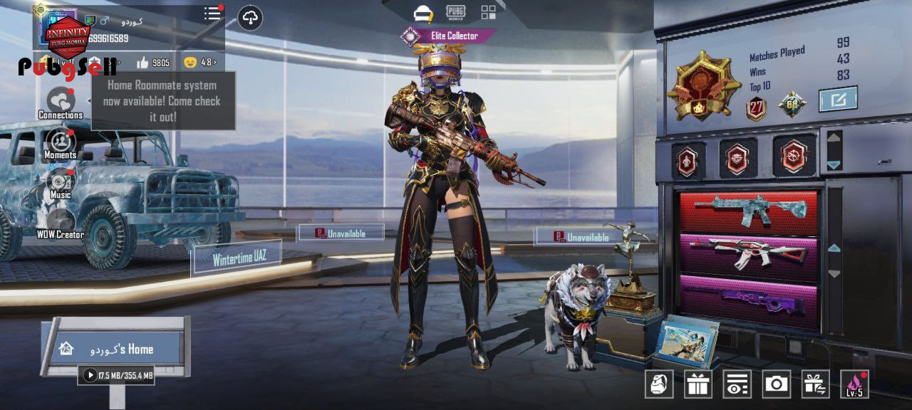 Metic 141 /300 🧛 Ignis X-Suit (2-Star) 🦁 Nether Visage 2-Seat Motorcycle🏍 Ceratops Blitz Buggy (Lv. 4) 🏎 max Night Phantasma UAZ (Lv. 1)🚘 Duneshine Dacia (Lv. 1)🚙 Pet Dog (Lv.10) Max Pet Wolf ( Lv.10) max 👕Invader Set 👕Smooth Hitman Set 👕Glacier Set 👕Fiend Huntress Set 👕Charged Armor Set 👕Swiftfoot Phantom Set 👕Feline Fighter Set 👕Cybersanct Paradox Set 👕Nlight Phantasma Set 👕Levi Character Set 🎒Ignis Backpack 🎒Galadria Backpack 🎒Deadly Glare Backpack 🎒Origin Lumen Backpack 🎒Foxy Flare Backpack 🪖Galadria Helmet 🪖Ignis Helmet 🪖Masked Psychic Helmet 🧢Eminent Seer Cover 🧢Frost Queen Cover 🧢Fallen Spirit Cover 26 gun 🔫 + 4 Material Glacier - M416 (Lv. 7) max Wanderer - M416 (Lv. 4) Decisive Day - AKM (Lv. 5) Mauve Avenger - AWM (Lv. 4) Unicorn - M762 (Lv. 4) Marine Evolution - UMP45 (Lv. 4) max Spirit Sentry - UZI (Lv. 4) max Nightscape Gladiator PP19Bizo(Lv. 4) max Chicken Hot - Pan (Lv. 2) Tundra Knight Dagger (Lv. 2) Dazzling Sun - QBZ (Lv. 1) Killer Tune - M24 (Lv. 1) Codebreaker - AKM (Lv. 1) Bunny Munchkin - AKM (Lv. 1) Titanium Shark - Kar98K (Lv. 1) Kitty Kadence - Kar98K (Lv. 1) Crimson Ephialtes - AMR (Lv. 1) Drakonbane Remnant - Machete (Lv. 1) Circus of Screams - Crossbow (Lv. 1) Panthera Prime - DBS (Lv. 1) Faerie Luster - Pan (Lv. 1) Lilac Finesse - Thompson SMG (Lv. 1) Seadream Melody - SLR (Lv. 1) Thornrose Dawn - M16A4 (Lv. 1) Patchmetal Bunny - Mk47 (Lv. 1) Rustborn Strider - NS2000 (Lv. 1