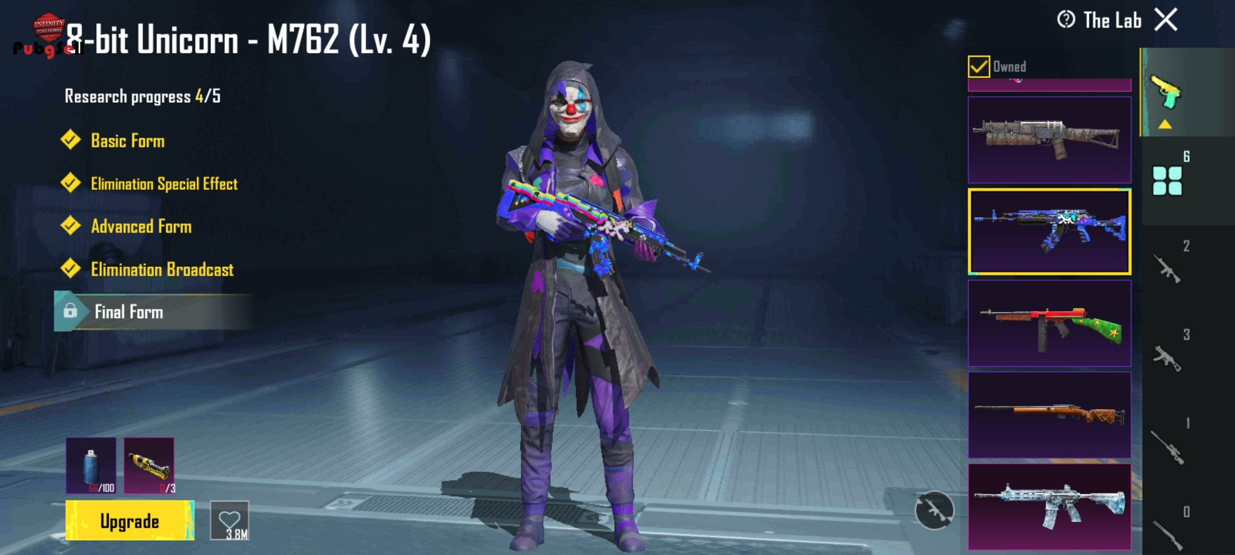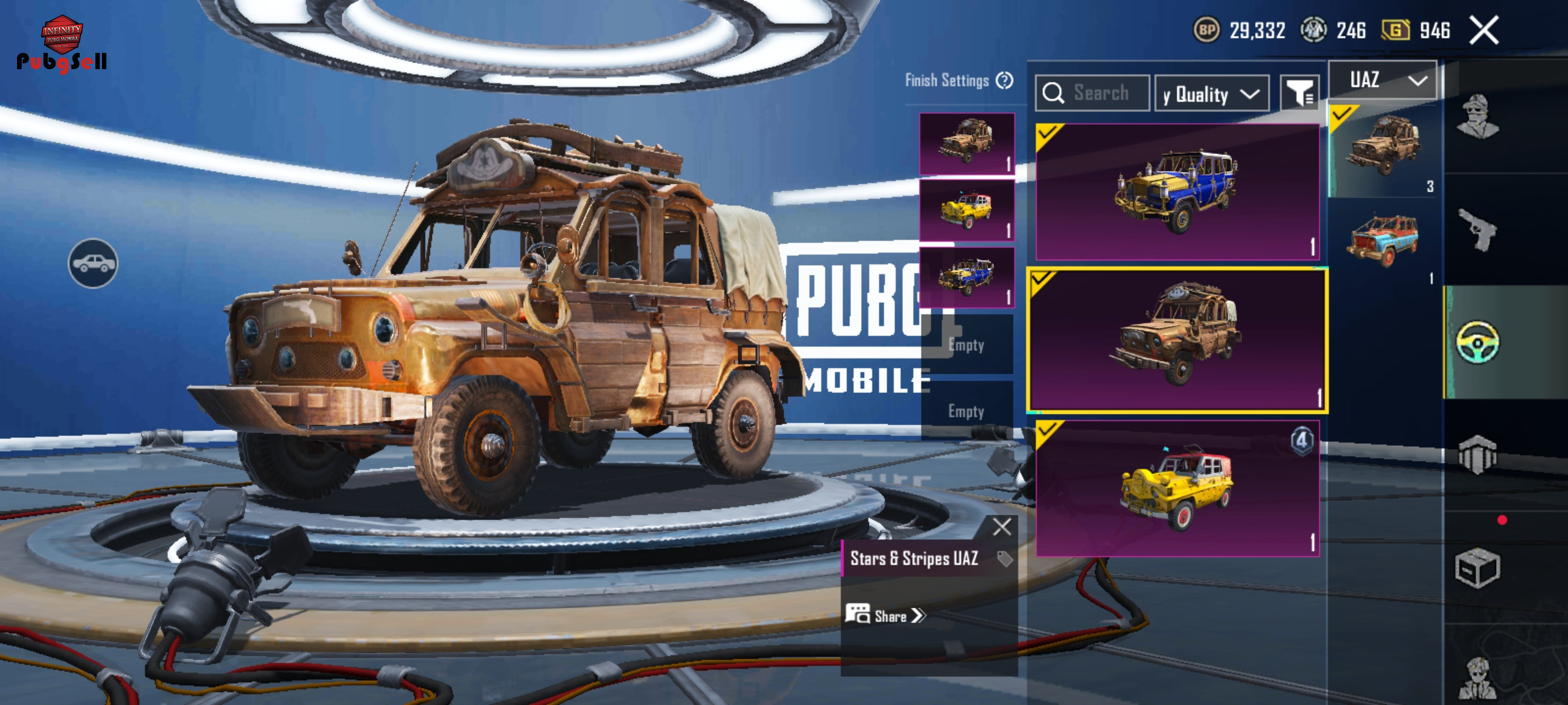 دارای تیتل کانکور و تعدادی گان اپگریدی مثل امفور یخی 5 ام 7یونیکورن 4 بیزون 4یومپی....... دارای ست جوکر و ست های قدیمی دیگر اسکین های محبوب ماشین ها و متور به دلیل خدمت رفتم و وقت بازی ندارم میفروشم