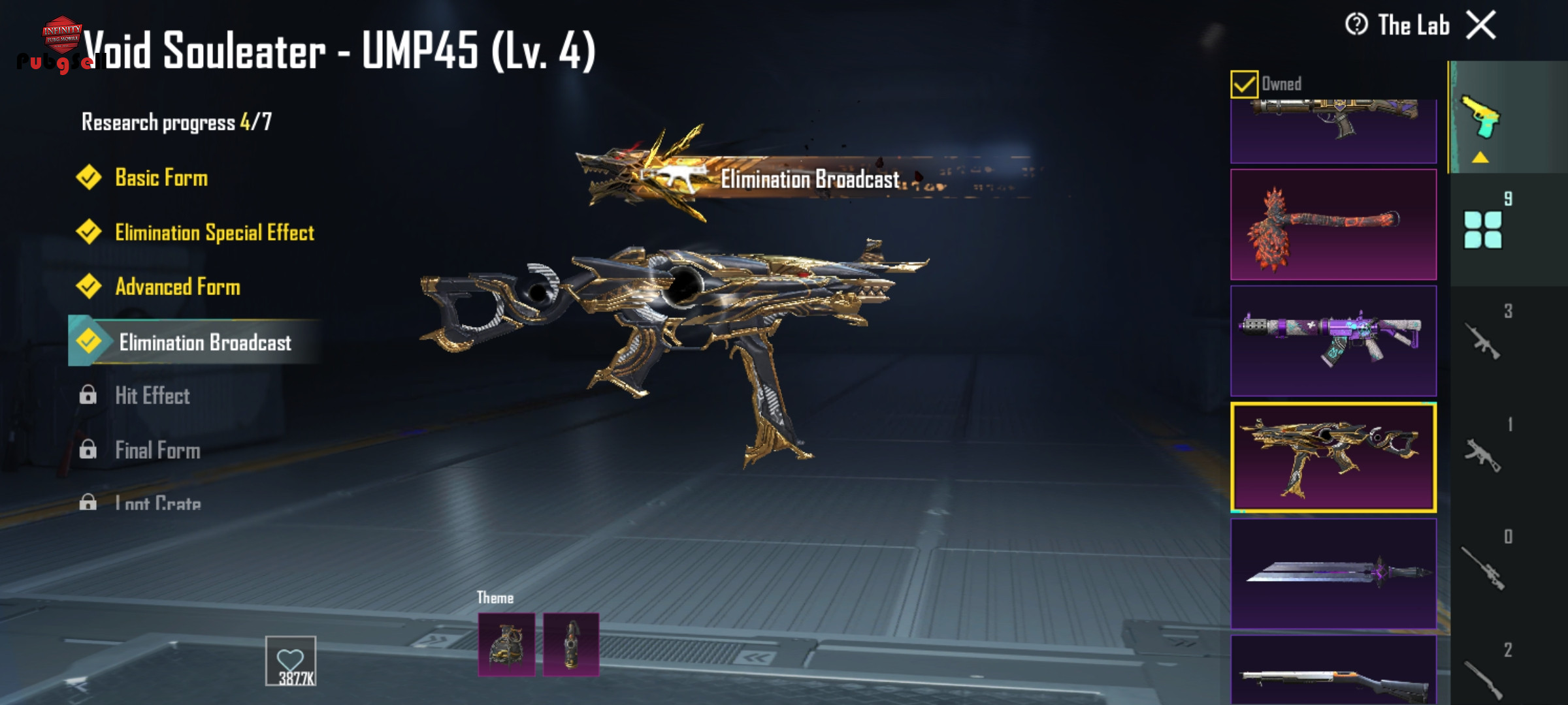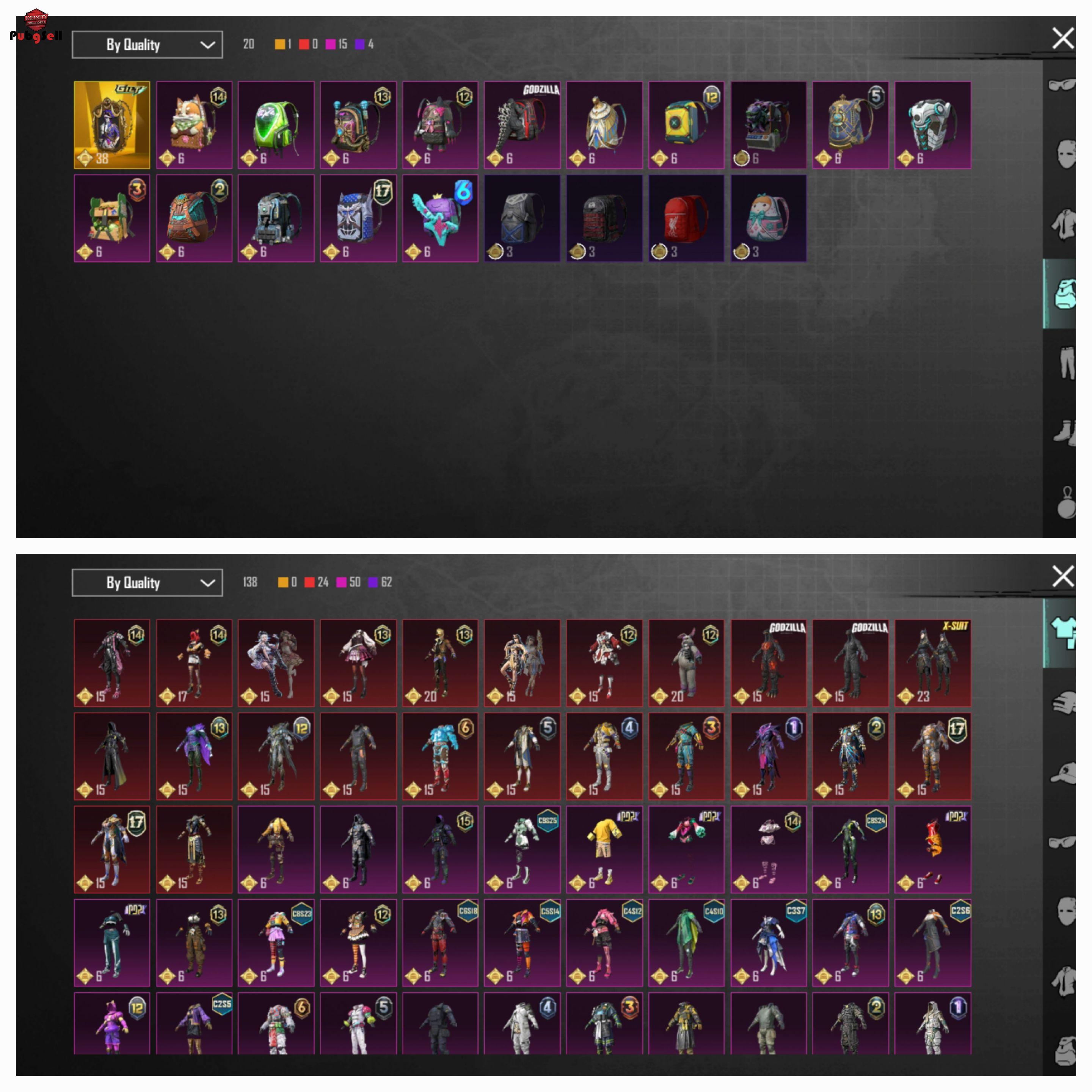 اکانت خوبیه چندین سیزن الایت شده و 440عدد یوسی داخل اکانت موجود هست کالکشن لول 47 میباشد و گان های آپگریتی و لول های آن به شرح زیر میباشد و گان یو ام پی کیل مسیج میباشد:
