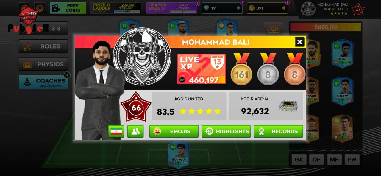 اکانت نیمه مکس آبی هست (فول آبی) و قدیمی هست و بالای 1600 تا وین داره و آلیسون و راموس و پوگبا مکس داره و بازیکنانی که از بازی حذف شدن و خیلی کم یاب هستن مثل ورنر و راموس و پوگبا و سوارز و رودریگو و ژیرو رو داره و بازیکن ایرانی سامان قدوس هم داره و بسیار اکانت کم یاب و خفنی هست قیمت هم پایین گذاشتم چون پول لازم هستم