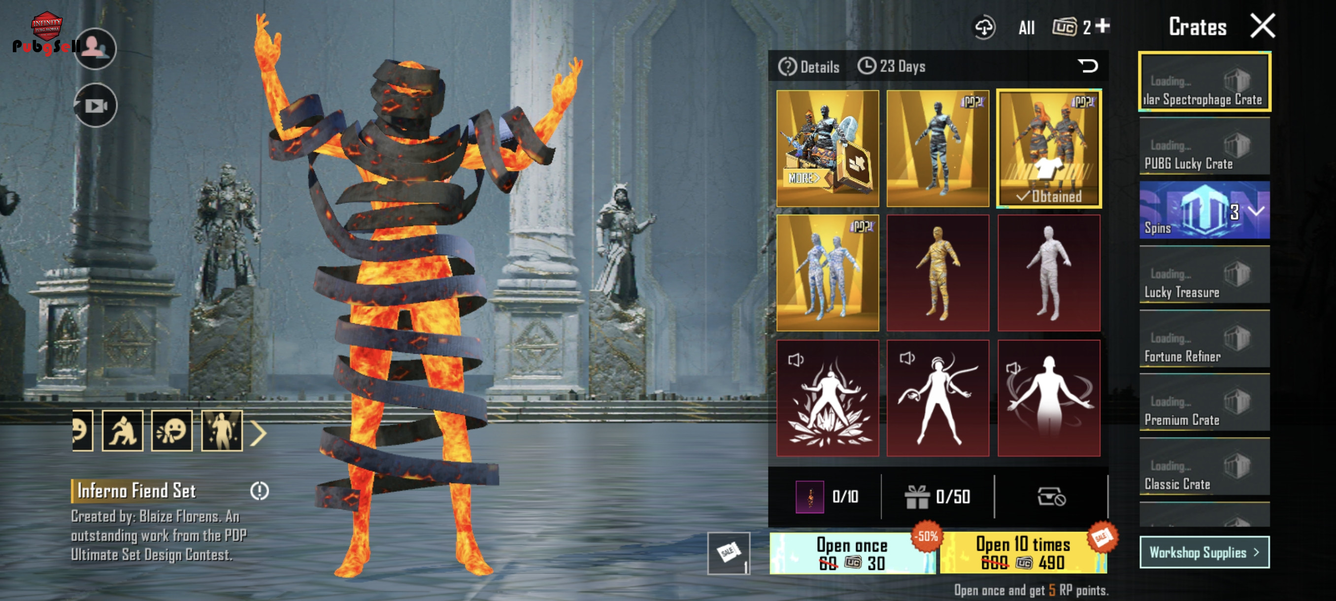 بهترین لباس پابجی مومیایی اتشی.سیزن های الایت شده قدیمی...همه چی داره اکانت خوبیه.به این قیمت مومیای اتشی پیدا نمیکنی