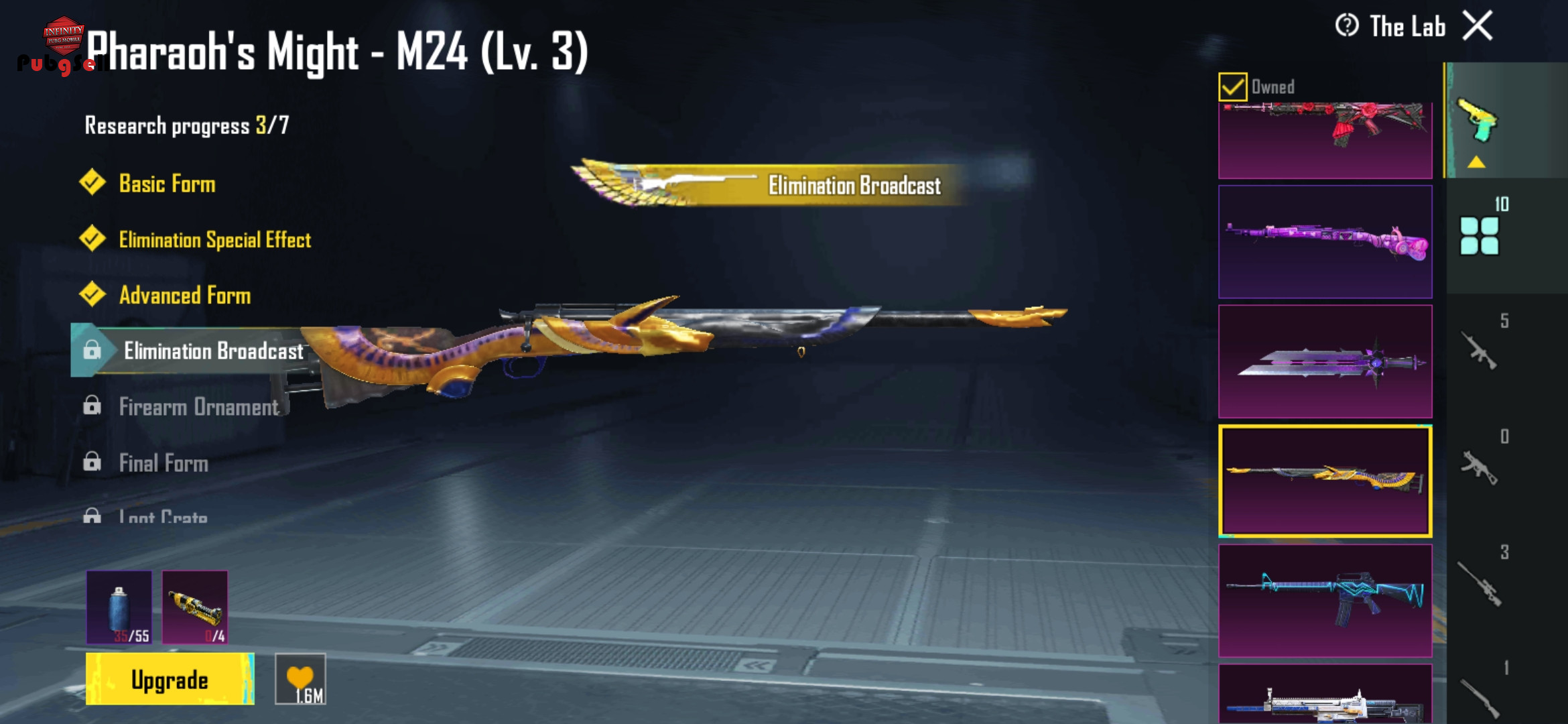 دارای 10گان ام 24فرعون لول 3 گلایدر اکسوت لباس اولتیمیت داره لباس اینوندر داره و چند گانه کیل مسیج