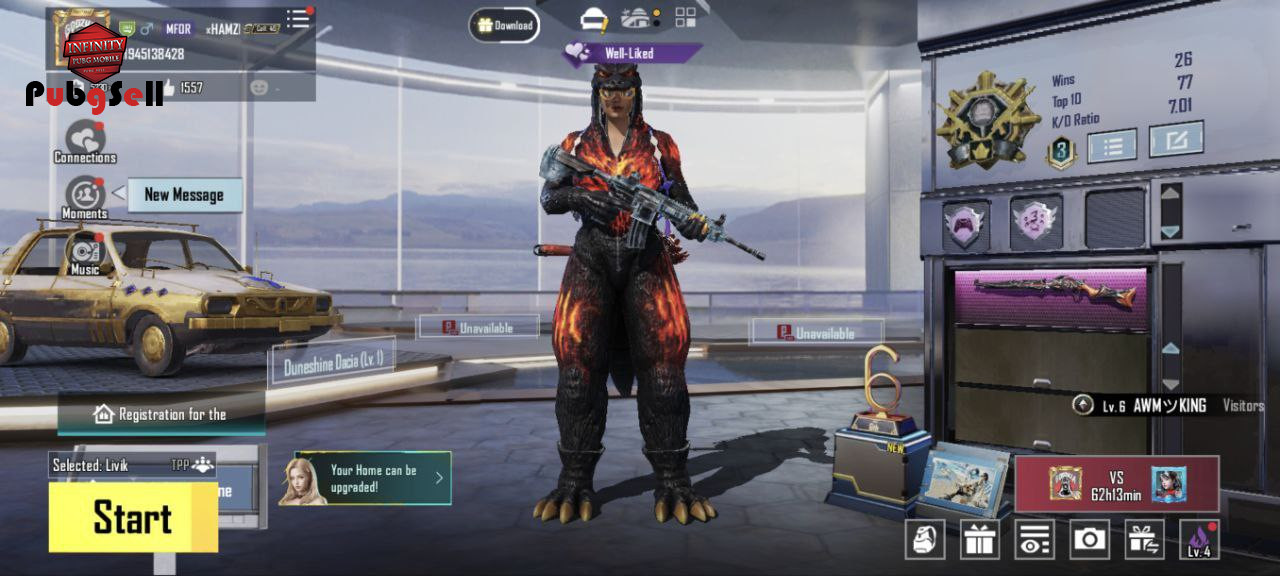 Name Pubg Mobile Account: انفور یخی لول 2🥶 ست گودزیلا 👿فول ایتم