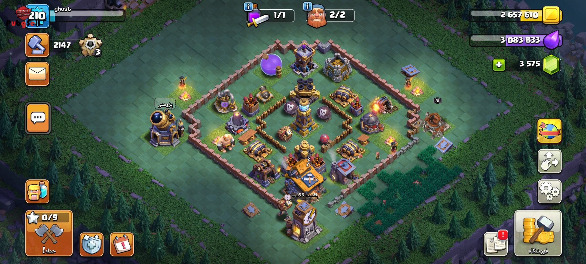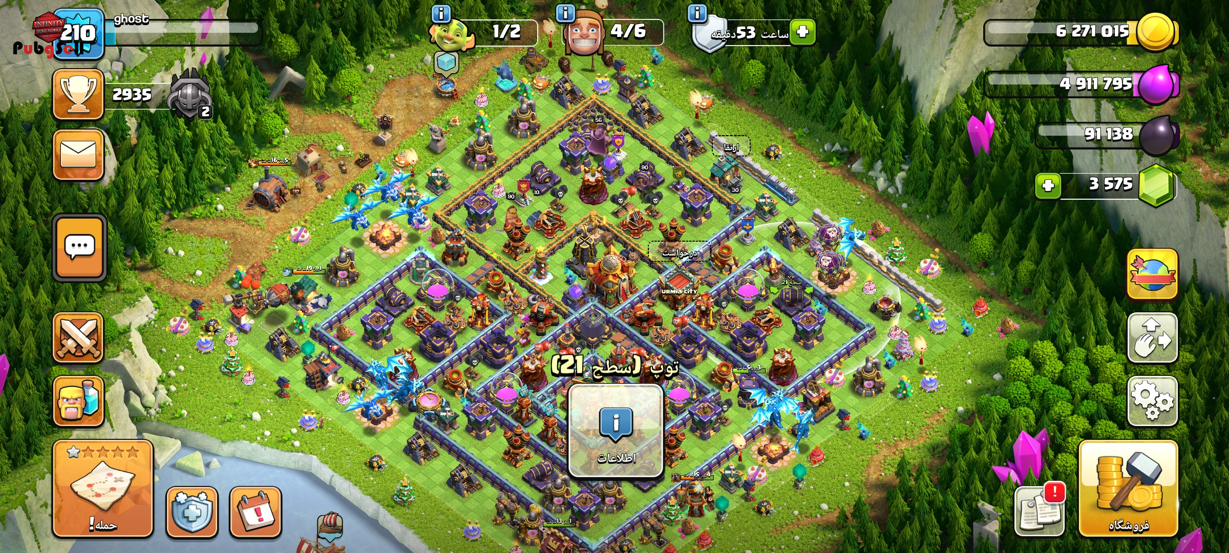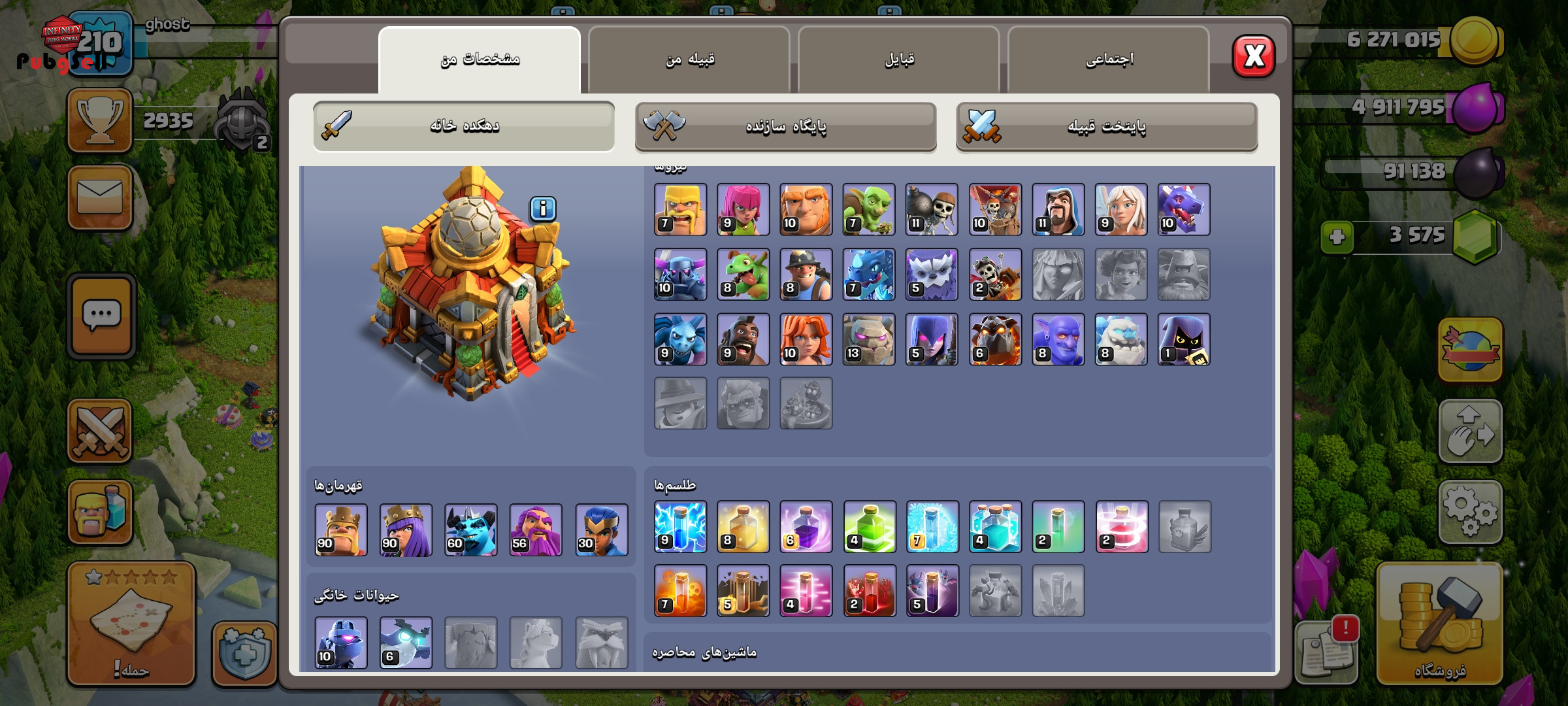اکانت کلش آف کلنز لول 210 تاون هال 16 تقریبا مکث با جم 3550