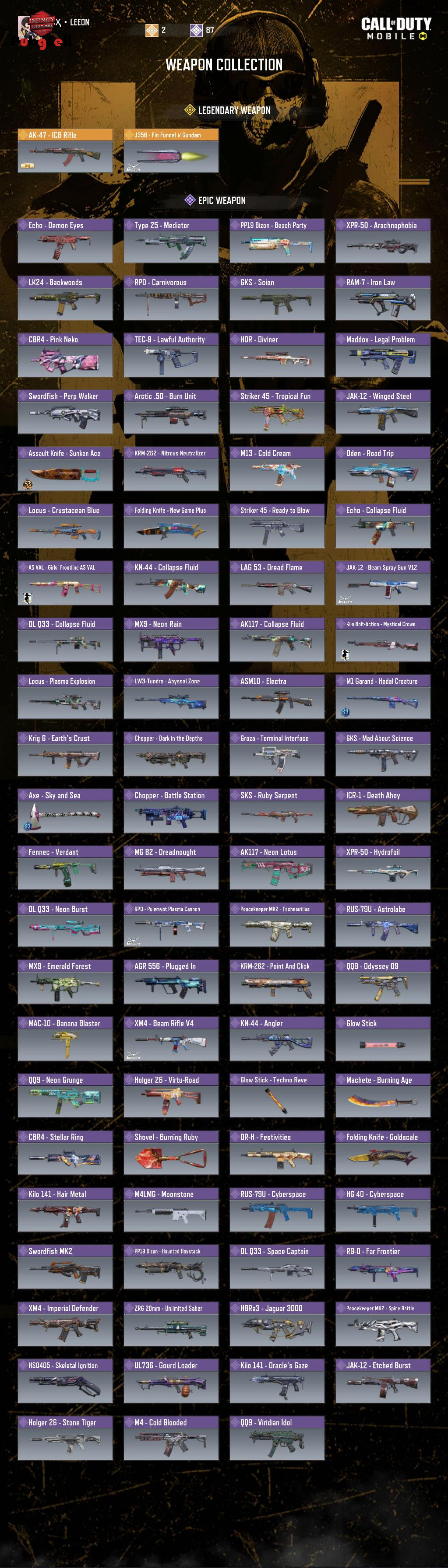 با سلام اکانت خوبی هست 7تا بتل پس داره بعد 2تا اسکین دل کیو رو داره 100فکر کنم گان اپیک داره دو تا لجند