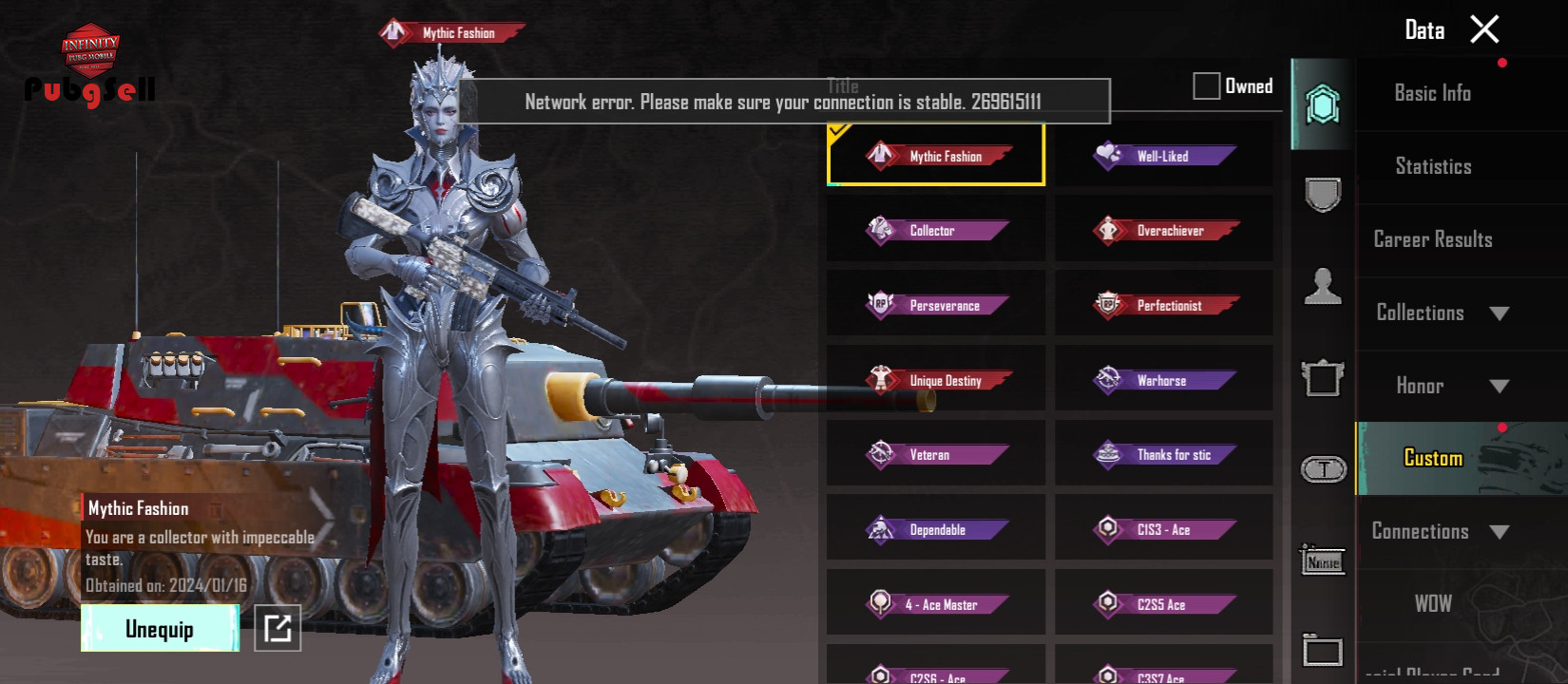 ⏫ لول اکانت:74 💥 لول کالکشن: 58 💵 تعداد یوسی: ❌ 💎سیزن های الایت شده: M6 M7 M8 M9 M10 M11 M12 M13 M14 M15 M16 M17 M18 M19 M20 M21 M22 A1 A2 A3 A4 A5 A6 A7 A8 A10 A13 🏅سیزن های الایت مکس: همه بجز A13 🏆سیزن های کانکوئر شده: ❌ 🐔 محبوبيت یا چیکن: 400k 🎖تعداد کل متیک: 74 💰قیمت: 3m ➰لینک شده: جمیل - لینک 3 ♠️ گان های اپگریدی غیر آرپی: Forest Raider - GROZA (Lv. 2) The Seven Seas - M24 (Lv. 4) Concerto of Love - M762 (Lv. 4) Melodic Rhythm - Honey Badger (Lv. 1) Onyx Blizzard - AMR (Lv. 1) Codebreaker - AKM (Lv. 1) Romantic Moments - UZI (Lv. 1) Midnight Rose - Vector (Lv. 1) Blazing Chameleon - PP-19 Bizon (Lv.1) Dragonfire - UMP45 (Lv. 1) ♣️ گان های اپگریدی داخل آرپی: 10 تا 👘 ست های اپگریدی: Stygian Liege X-Suit 👾 🚘 ماشین های کارتی و اپگریدی: ❌ ⚜توضیحات بیشتر : 27 سیزن الایت 9 تا ست متیک غیر آرپی ایکسوییت Stygian Liege لول کالکشن 59 با 74 متیک , 527 لجند ، 536 اپیک و 20 تا گان آپگردی 1 متریال کامل با 8 تا مینی متریال 5 تا جم کامل با 16 تا مینی جم ست متیک لیوای و تایتان ارن یگر اتک آن تایتان ♦️ ست سیزن 2 و ماسک سیزن 2 جوکر 43 دنس متیک ست های تی دی امی 2 تا نید کیل مسیج هواپیما گاد کارت آیدی 17 روز 29 روم 7 روزه ، 71 روم 1 روزه و 6 تا روم wow تایتل های : Mythic Fashion ♦️ Ban ♦️ Six lineages ♦️ کاراکتر های : Victor ♠️ Sara ♠️ Andy ♠️ Anna ♠️