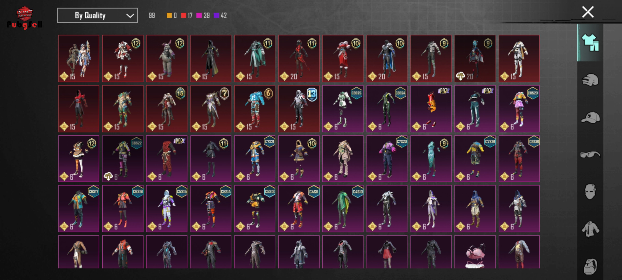 مفت میدم نسبت به آیتم ها و اسکین هاش خوش شانسی اکانت به کنار. کالکشن 42 و 5یا 6 تا گان آپگرید