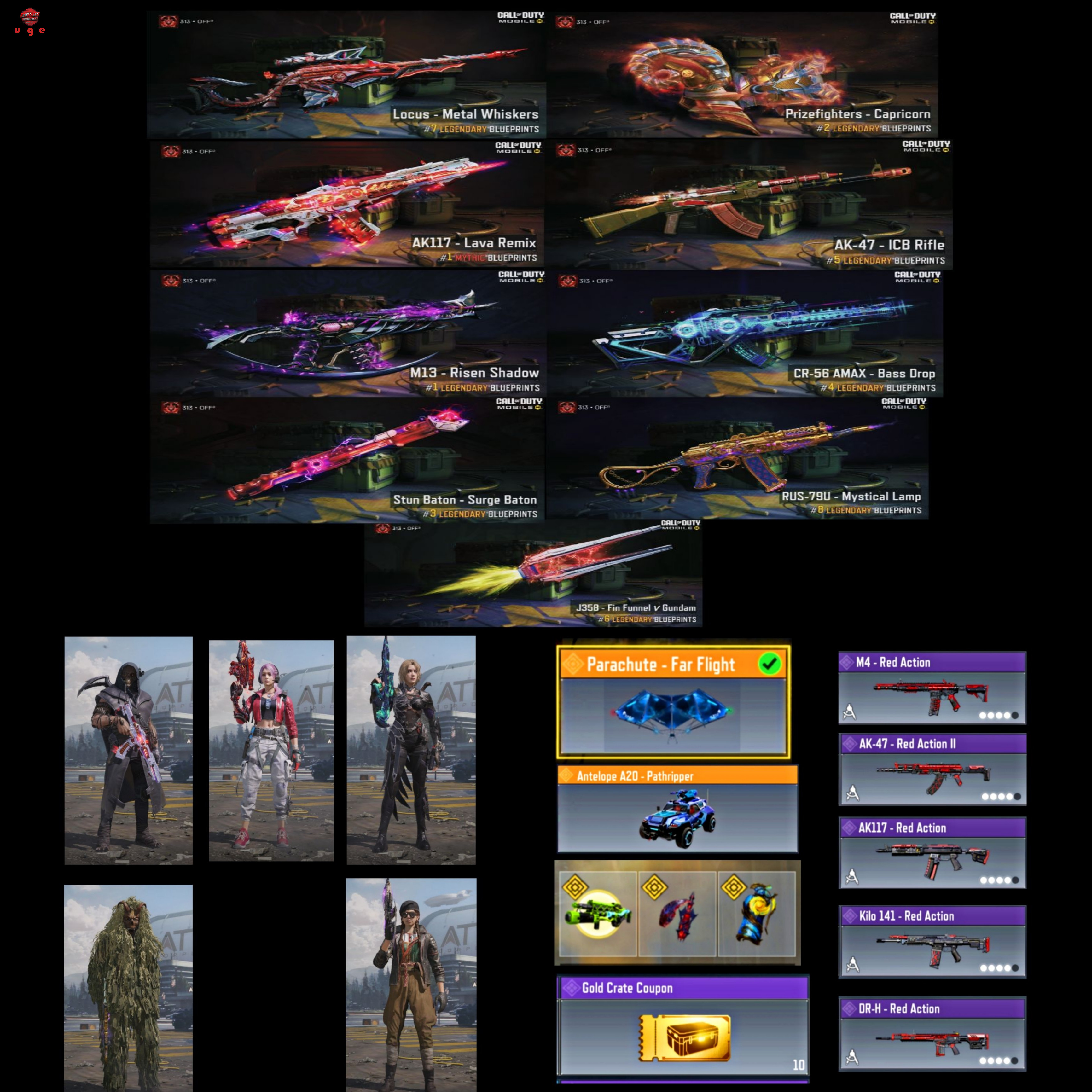 230 تا گان و 80 تا اسکین چتر لجند و ماشین