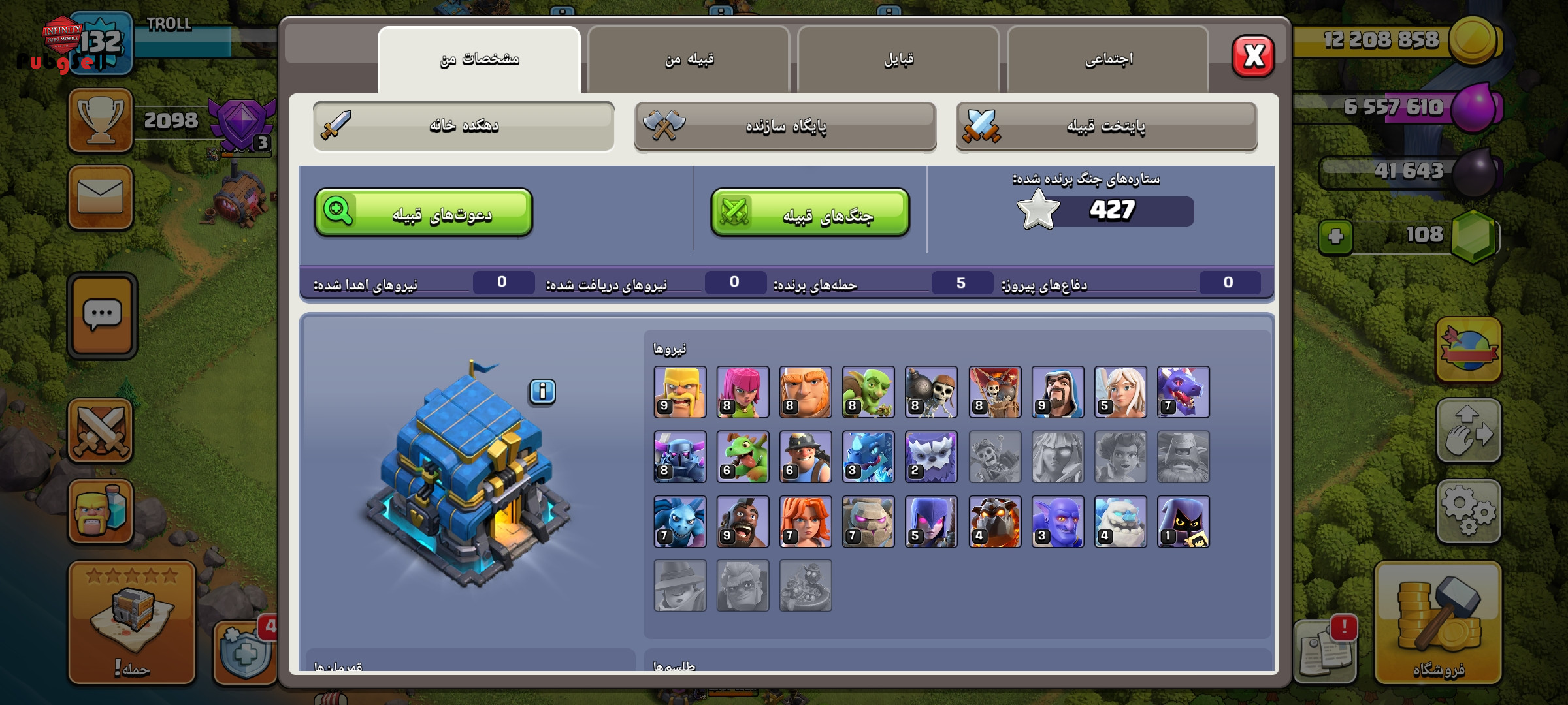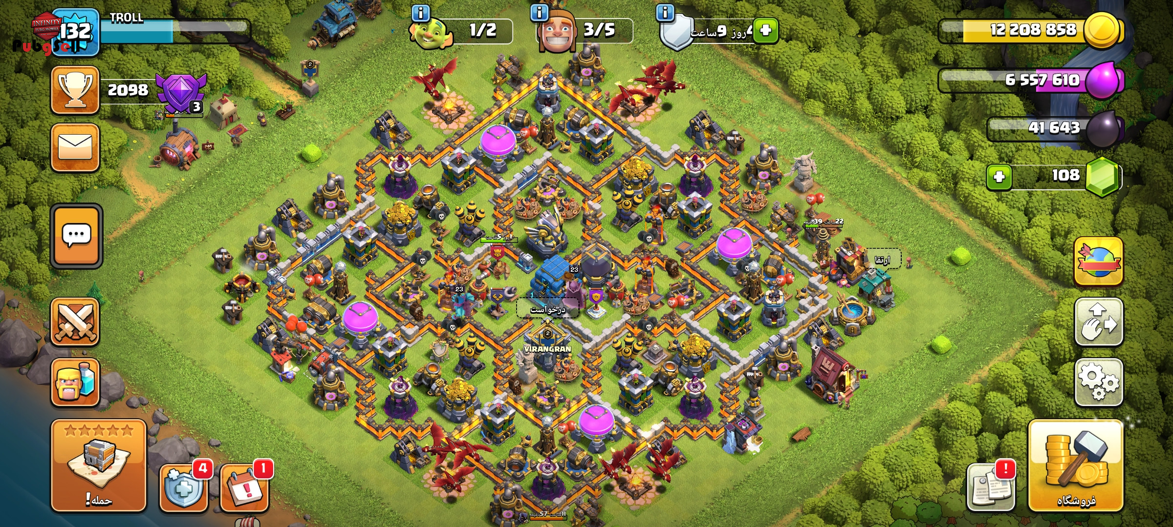 اکانت کلش آف کلنز لول 132 دارای پنج کارگر