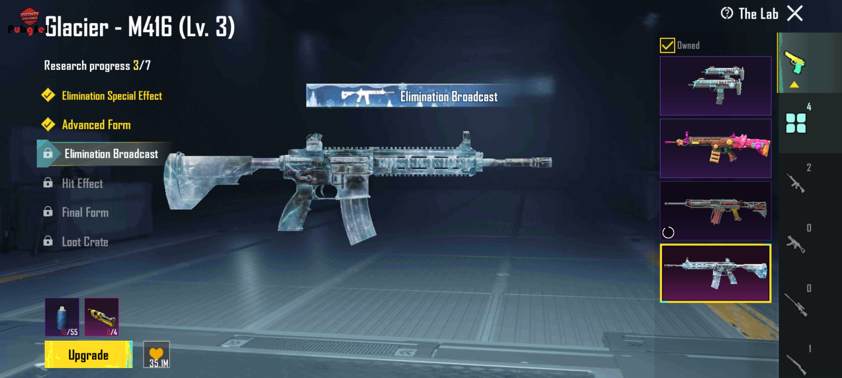 اکانت دارای گان های آبگریدی اسکارل لول دو امفور یخی لول 3 و شات‌گان لول یک و بقیه گان ها در ویدیو لباس متیک هم داره لباس کاپیتان هم داره