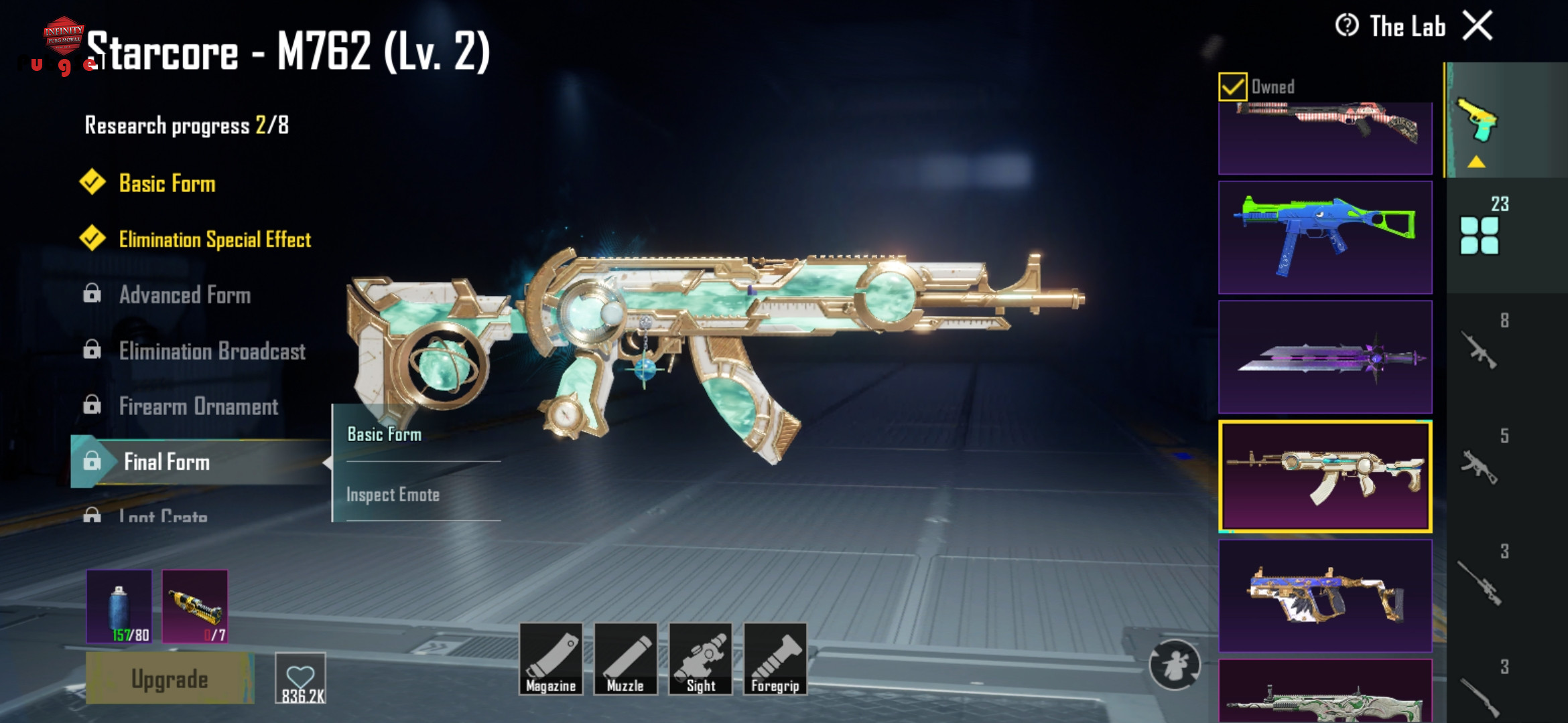 لول کالکشن:60 کانکور شده کانکور جدید 3 جایگاه گان باز اچیومنت: 7770 ( همه تایتل های طلایی با بیشتر متیک ها باز شده) کل ایتم ها به جز پابجی pmgs و این سیزن جدید باز هست و اپگرید شدن کارت روم: 35 تا یک روزه 22 هفت روزه 5 تا wow لایک ها: لول 4 هدایی لول 14 کلی چیکن هم روش هست میتونید استفاده کنید چیز های مهم: 87 ست متیک و 550 تا اپیک موی سیزن 5 بک پک فرعون بک پک آبی بسیار کم یاب چتر فرعون هلمت یخی و متیک و هلمت زلیخا همه دنس های ایکسوت هارو داره دنس سیزن 2 و 3 فول دنس گلایدر متیک فرعون نید کیل مسیج و2 تا اپگریدی 2 تا مولوتوف اپگریدی اسموک زلیخا کاراکتر ها:اندی ، کارلو ، سارا ،لورنزو ، ریلی ، ویکتور(بیشتر کاراکتر ها مکس اصلی ها همه مکس) پت ها: گرگ ، گوربه ، عقاب قدیمی ( گوربه اسکین ست فرعون رو داره) ماشین ها: Boldline Cruiser UAZ لول 1 Duneshine Dacia مکس ایکسویت: Anukhra X-Suit لول 3 یک لول دیگه کیل مسیج برای همه گان هاش باز میشه گان های اپگریدی : Gold Pirate - AKM لول 5 Void Souleater 4لول Platinum Ripper - UMP45 لول4 Thorn of Malice - SCAR-L لول4 Gilded Reaper - Vector لول4 Starcore - M762 لول2 The Seven Seas - M24 لول 2 Eventide Aria - GROZA لول2 Gilded Jade Dragon - DP-28 لول1 Chow Blaster لول1 Patchmetal Bunny لول1 Rustborn Strider - NS2000 لول1 Tundra Knight Dagger لول1 Spirit Sentry لول1 Primordial Remnants - Groza لول1 Seadream Melody - SLR لول1 Atomic Trigger - SI2K لول1 Kitty Kadence - Kar98K لول1 Vivid Glare - Honey Badger لول1 Panthera Prime - DBS لول1 Circus of Screams - Crossbow لول1 Marine Evolution - UMP45 لول1 Drakonbane Remnant - Machete لول1 خلاصه اکانت خیلی گادی هست کلی متیک خارج از ارپی لباس های سیزن های قدیمی زیاد داره خیلی اکانت گادیه نصف چیز هایی که داره رو حوصله نکردم بنویسم ولی خیلی اکانت کامل و تکمیلی هست همچی داره گان های اصلی رو داره خارج از ارپی که بیشترشون کیل مسیج هستن خلاصه مبارک صاحبش