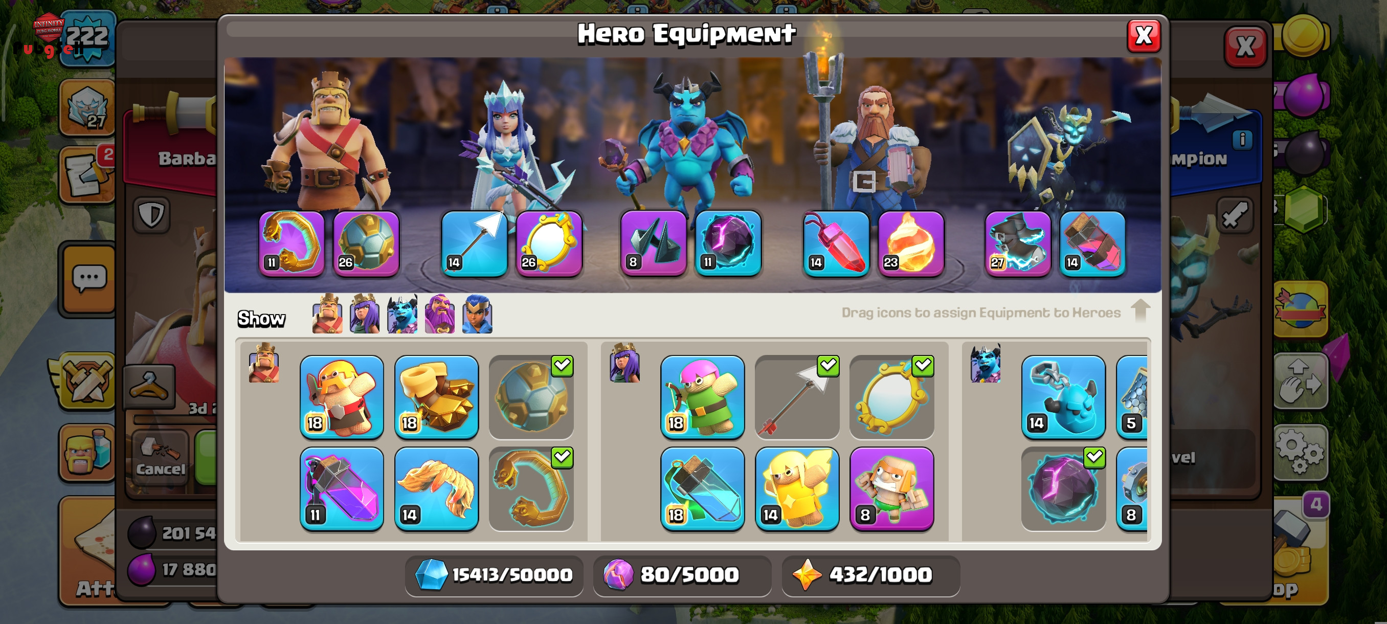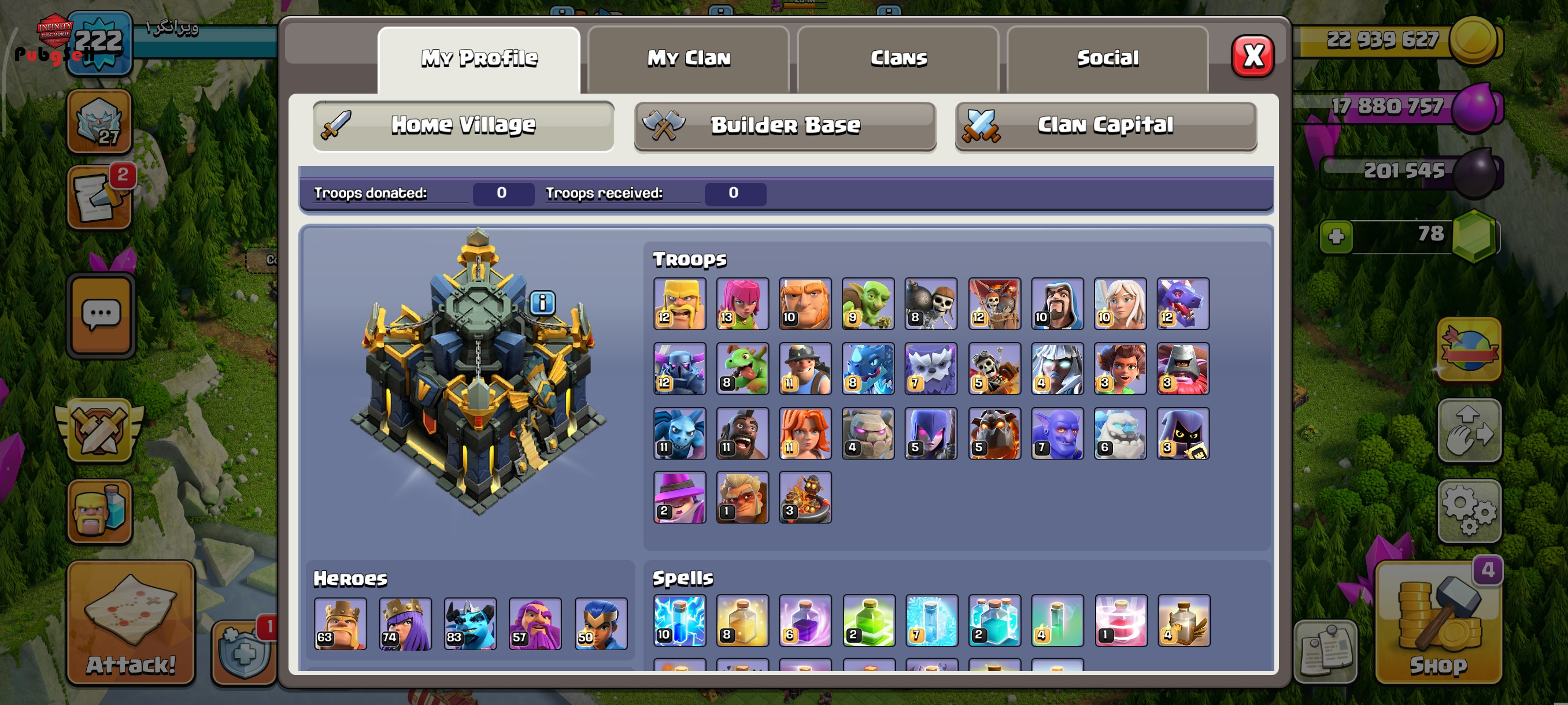 کلش تان 17 لول 224 هیرو ها تقریبا لول بالا 90درصد ابیلیتی هارو داره