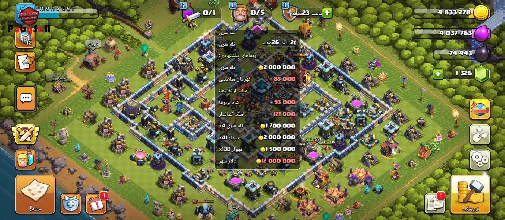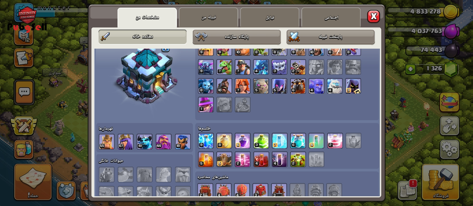 سه تا اسکین هیرو کینگ نگهبان بزرگ و ارچر کویین مپ پیکسلی لول قهرمان ها بسیار بالا لول اکانت هم خیلی بالاس قیمت هم ارزان