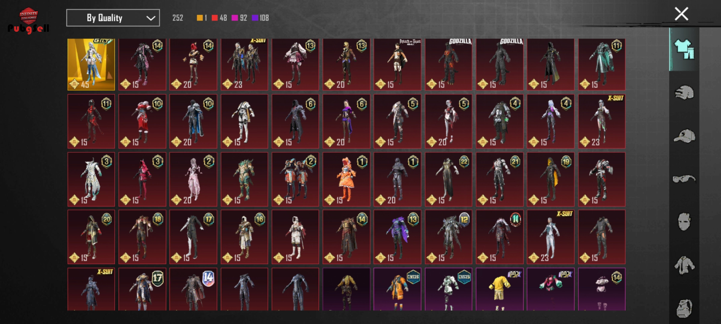 اکانت گاد دارای انفور یخی کیل مسیج یوزی گودزیلا کیل مسیج m700کیلی مسیج اسناپ کیل مسیج و خیلی گان های دیگه با لول های موتفاوت دارای چهار تا اکسوت XSuit-Dravion_XSuit-Fiore_XSuit-Silvanus_XSuit-Poseidon2 دارای یک لباس ولتمیمت لباس های منیک فور کالاکشن اکانت 59 همین سیزن الات بشه کالاکشن میشه 60 اکانت تکمیله