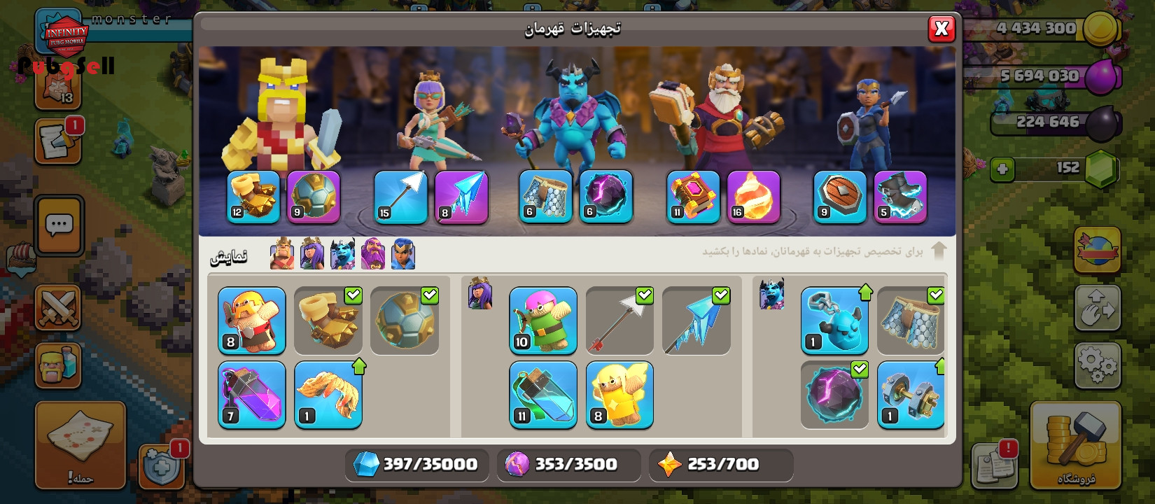 مپ پیکسل کینگ اسکین کوبین اسکین نگهبان بزرگ هم اسکین قدرت تیر یخی توپ کینگ توپ نگهبان بزرگ و چکمه رویال چمپیون قلعه شب هم مکس مپ روز هم کامل مکس