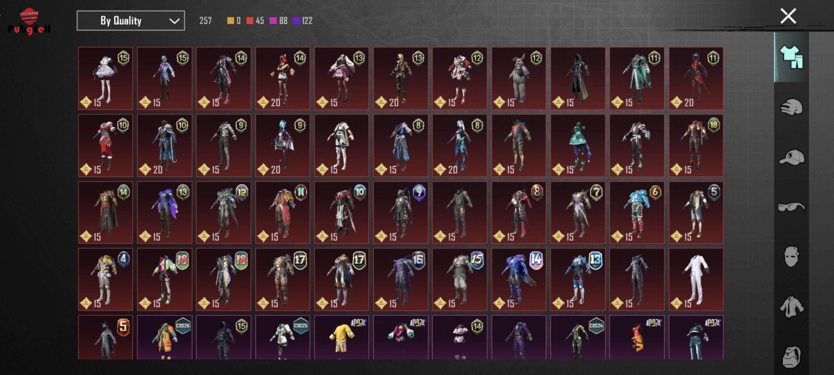 متیک کالکشن 58 کیف متیک ایک سوت و Akm اول 4 و UMPلول4 mg3 لول 4 اسکارل لول 3مکث یوزی لول 3 مکث گان ابگریدی تامسون لول 1 m24 لول 1 چاقو لول 1 قمه لول 1 mp7 لول یک m16 لول 1 SLRلول 1 mgl لول 1 ms2000 لول 1 mk47 لول 1 لباس بتمن سیزن 5 دارد کت شلوار سفید دارد 47 تا جعبه طلایی دارد 1عدد متیک فورج و دنس های قدیمی سیزن و کلی اسکین های زیبا لول 78 این سیزن هم الایت شده