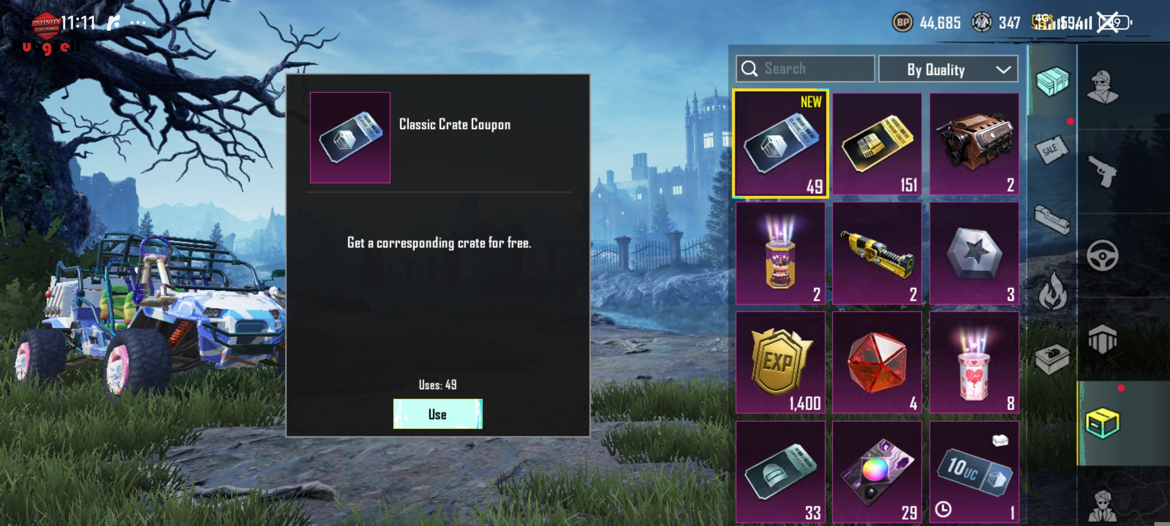 دارای چهارالماس عدد متیک فورج - دو متریال کامل و سه تا نیم - 150 تا جعبه طلایی - و دارای اسلحه اپگریدی زیر Mp7 lvl 1 M416m lvl 1 Mg3 lvl 1 M249 lvl 1 Scarl lvl 1 Ns2000 lvl 1 Ump lvl 2 فقط پول یوسی هاشه