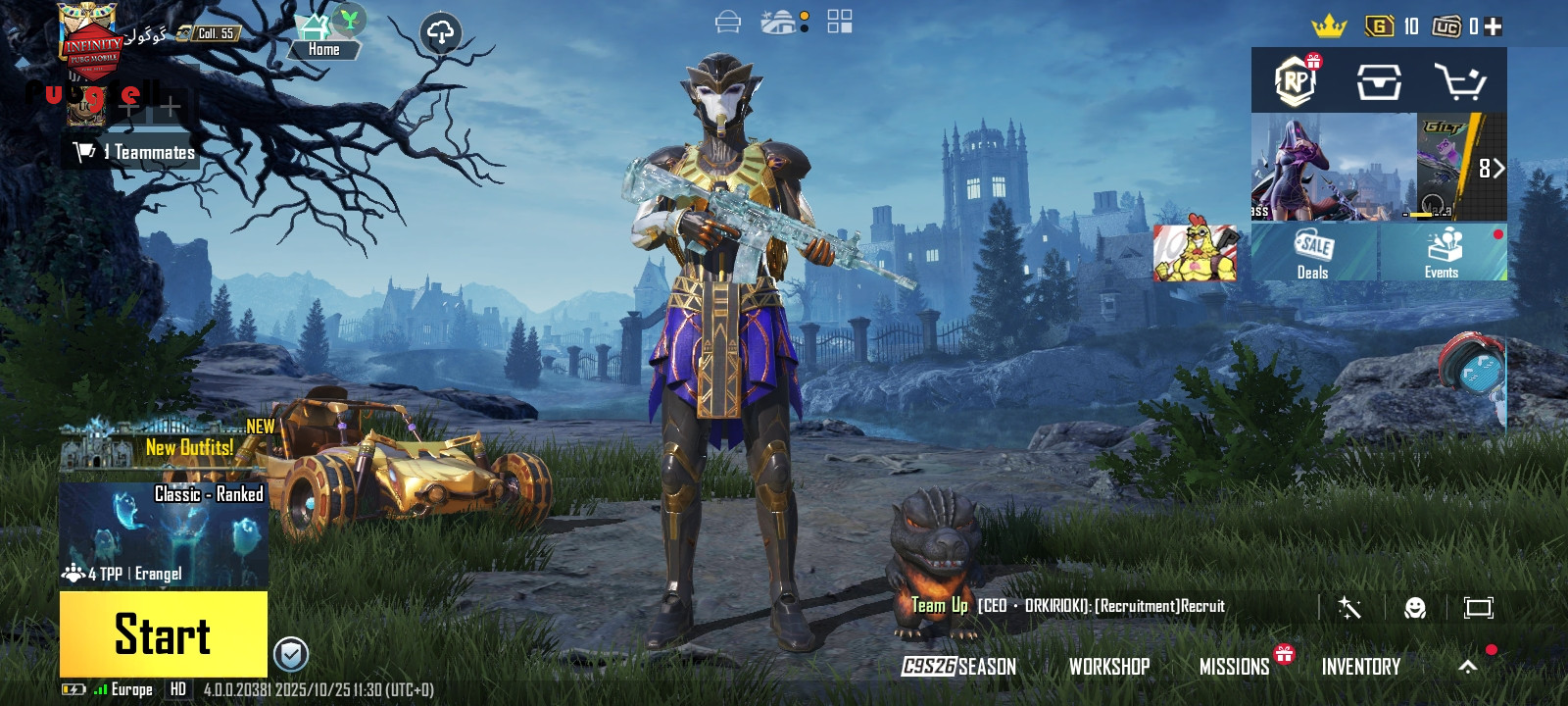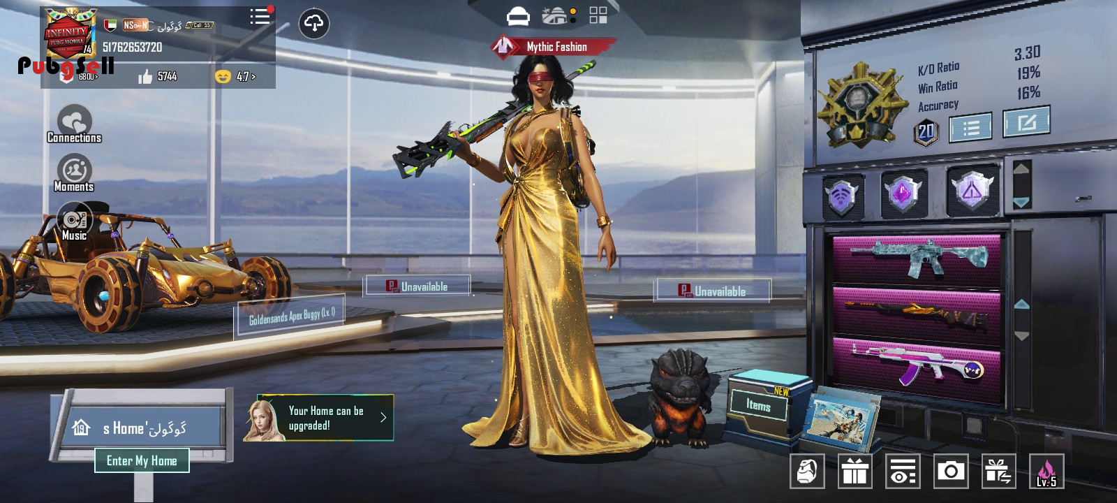 التیمت فرعون همرو فول داره امفور یخی لول 6 چند ست متیک فورج لباس های فرعون همرو داره کیف فرعون داره لباس های کریت زیاد داره 3 عدد ام 24 داره 24 تا گان داره نید مولی ابگرید داره پت گودزیلا گربه خرس پاندا همرو داره هلمت و کیف زیاد داره هلمت فرعون رو داره چند عدد ماشین آپگریدی داره 3 حالت پروفایل بازه لباس و گان بوگاتی رو هم داره 2 عدد لابی متیک داره که از بهترین لابی های بازی هستن