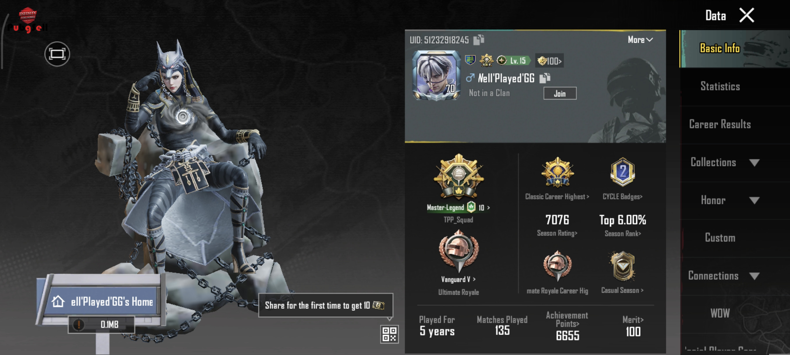 اکانت خوبی هست برا پلی دادن، ایکس سویت داره، 15 گان آپگریدی، M7 کیل مسیج، M24 کیل مسیج، ست بونوس پلاس و دارای 431 یوسی