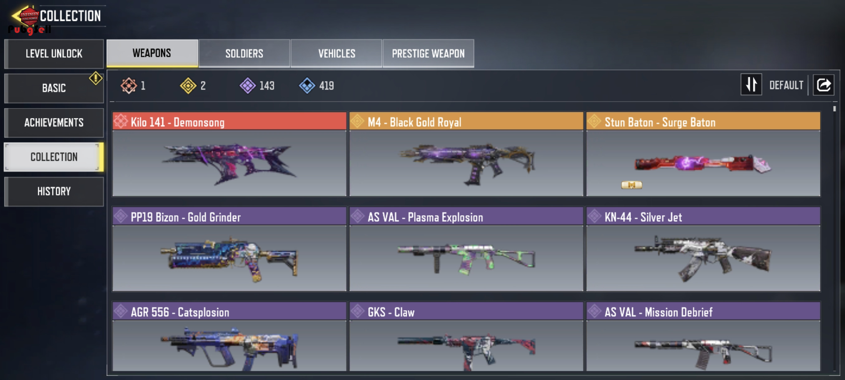 تو عکس سکرت کش هاش معلومه کیلو لول 2 هست 180تا کارت متیک هم داره 5تا گان گلد هم داره