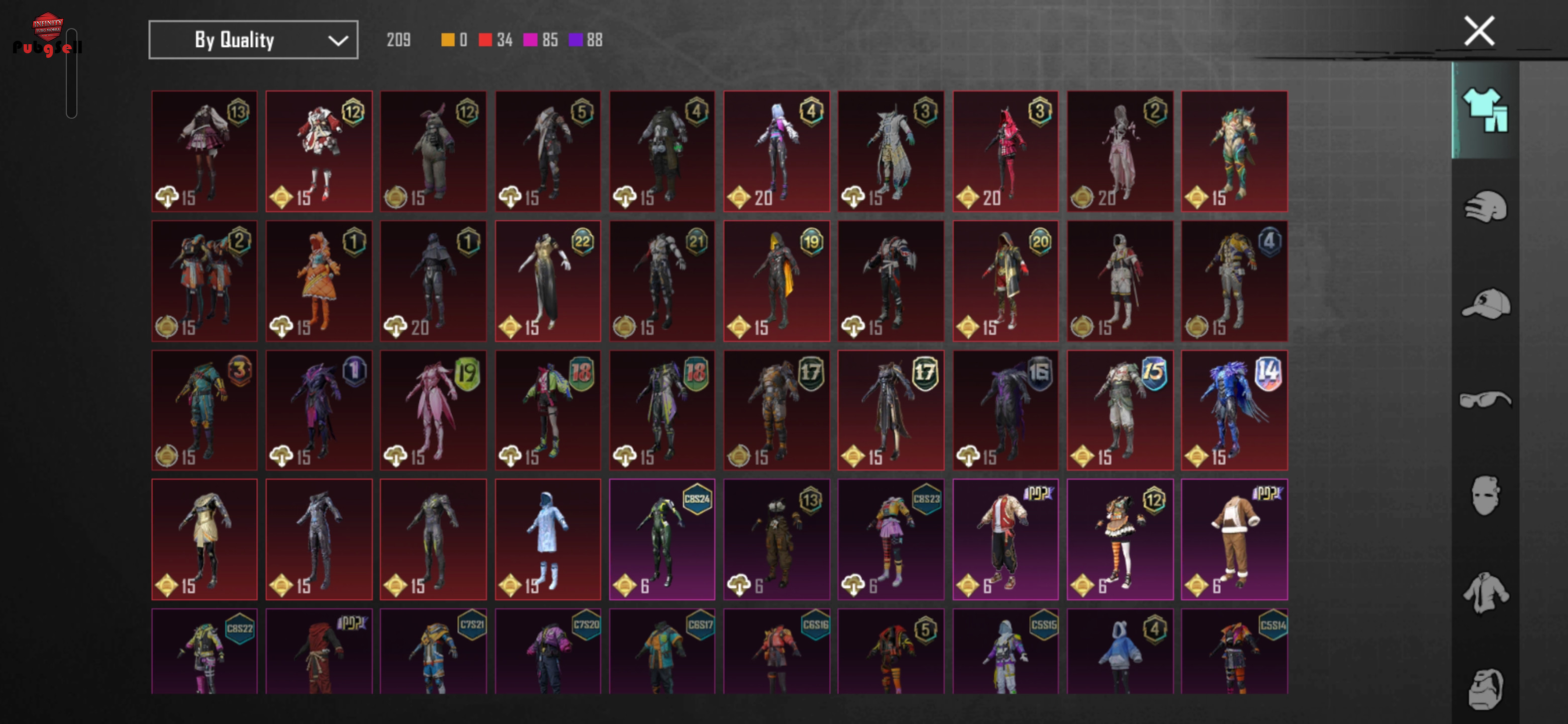 اکانت 10 سیزن الایت شده کلا 210 ست داره 34 تا میتیک 85 لجند و 89 اپیک کلا 15 گان اپگریدی داره که 8 تاش غیر آرپی هست m4 یخی لول 5 یا همون انهیت داره m24 دزد دریایی و m700 یونیکورن هر دو کیل مسیج دارای 5 تا متریال و 5 تا مینی متریال و6 تا متریال ماشین و 5 تا جم میتیک فورج 2 تا کارت آیدی 30 تا هلمت و 34 تا بکپک داره کانک سیزن های C1S1 & C4S10 هستش از ست بخام بگم ست یخی و اینودر و ست متیک که همراه فرعون اومده بود رو داره