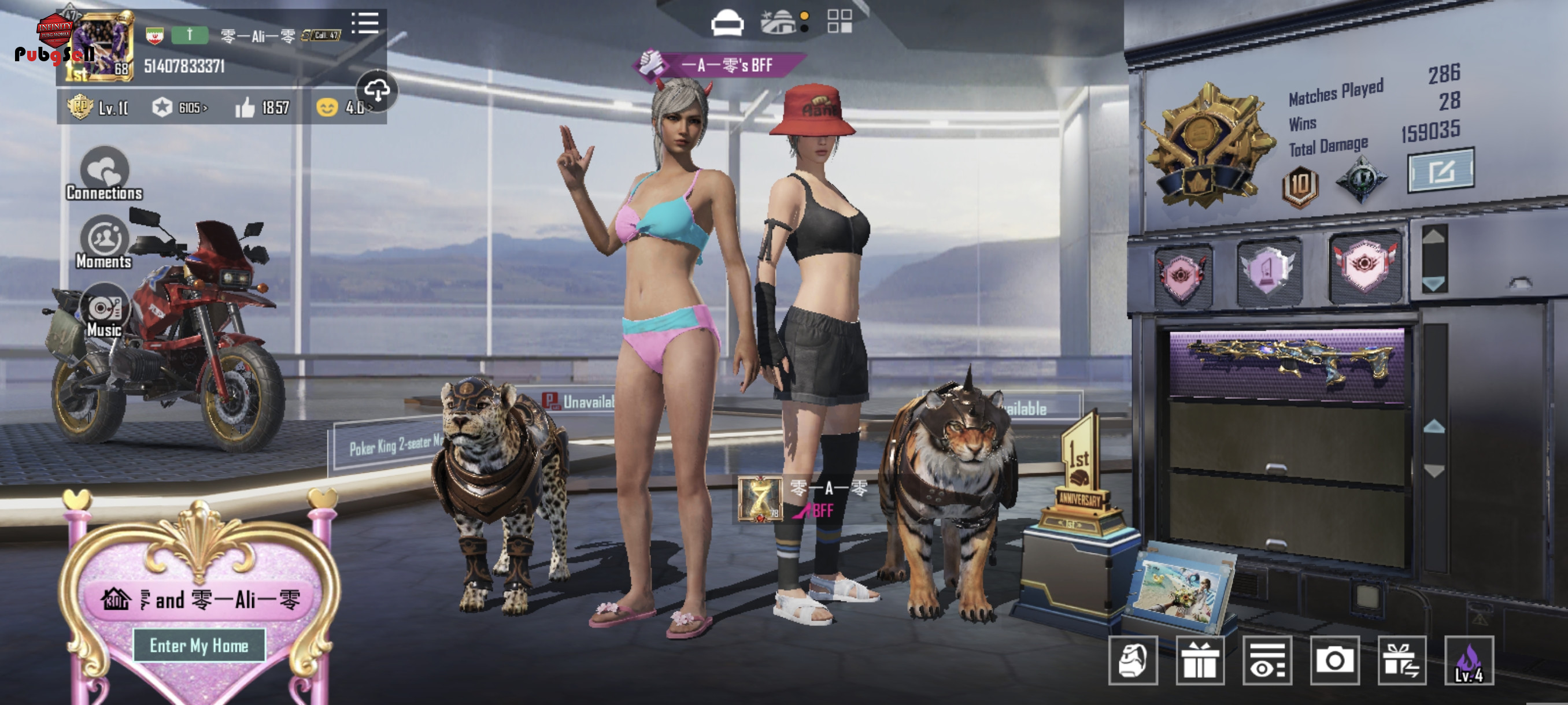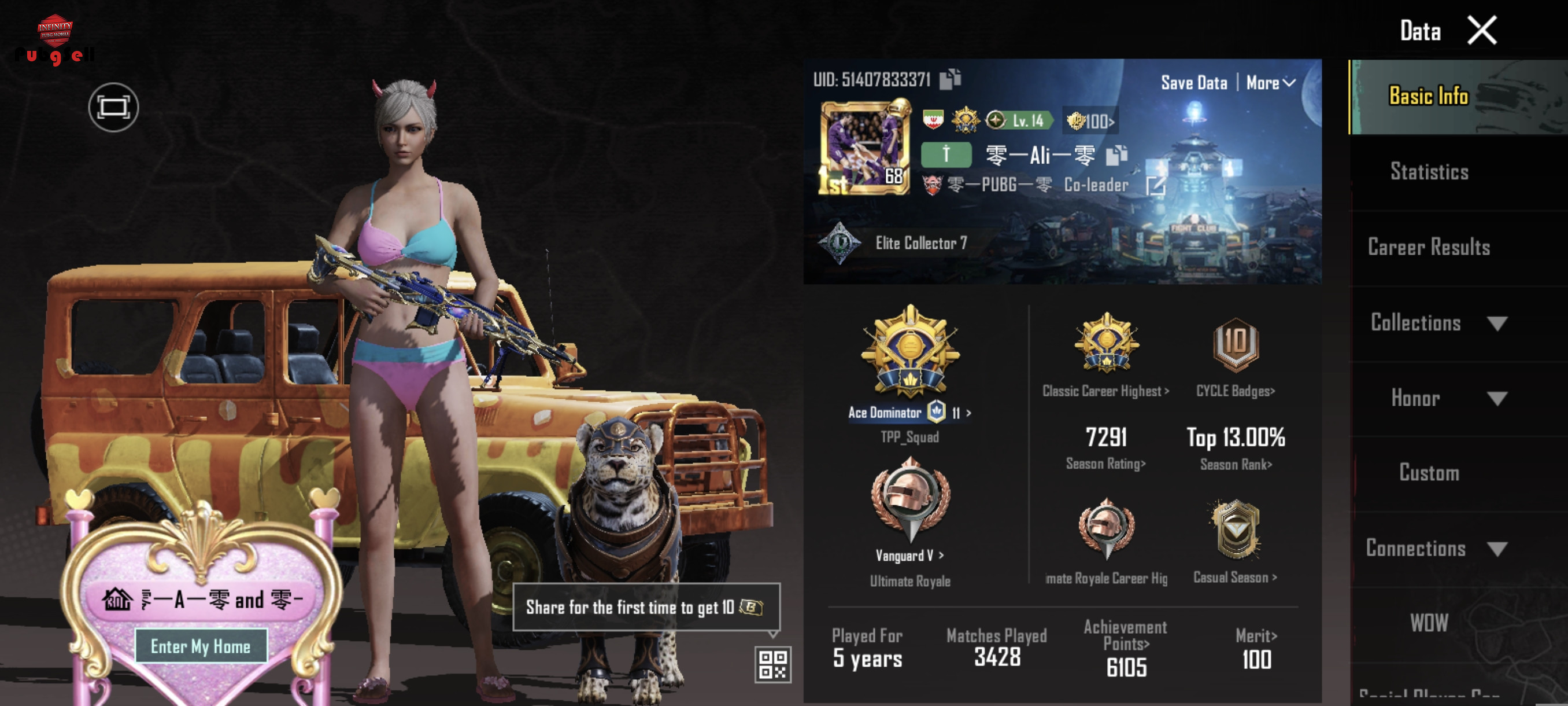اکانت از سیزن 18 پلی شده و اکثراً از جعبه سوپلای کریت متیک درآورد و خوش شانس است مثل ست زنبور و کیفش ، و کلاه های متیک دیگر ، ام کا کیل مسیج ، اس کار ال آرپی مکس ، قمه لول 1 ، پیستول لول 1 ، دارای 863 کارت کاراکتر ، و کاراکتر آنا ویکتور و سارا را دارد ، پت یوز پلنک مکس است ، و اسکین لباس و .... قدیمی زیاد دارد ، 4 جم کامل دارد و 5 مینی متریال هم دارد با کیلی دنس و بقیه در فیلم ببینید