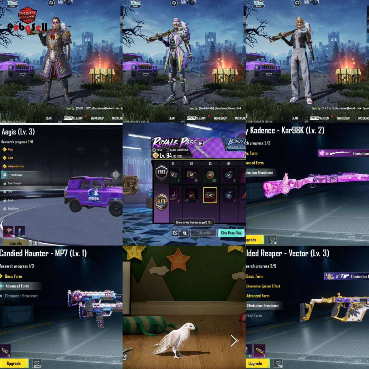 💯 لول :79 💸 تعداد یوسی :220 ⭐ سیزن های الایت: S:S16.S17.S18.S19 M:M1.M2.M3.M4.M7.M8.M9.M10.M11.M12.M13 A: A15 ⚜ سیزن های الایت مکس : S16.S17.S18.19.M1.M2.M3.M4.M7M8.M9.M10.M11.M12.M13.A15 🏆 سیزن های کانکوئر شده : 💯 لول کالکشن:51 نزدیک 52 🐔 چیکن (محبوبیت) : 🔐 لینک شده :لینک سه ⚙️ توضیحات : ⚡️ACCOUNT LV 79 ⚡️M4 ZENDANI ⚡️SET TDM ⚡️ COLLECTION 51 ⚡️MYTIK 39 ⚡️CHIKN LV 3 💫DANS SEASONS S13 💫DANS SEASONS S14 💫DANS SEASONS S15 💫DANS SEASONS S16 💫DANS SEASONS S17 💫DANS SEASONS S18 💫DANS SEASONS S19 ✨SET KAREKTR DAR MITIK ✨SET KAREKTR DAR EPIK KAM YAB ✨FOLL SET 🌟ACC FOLL ♠️ گان های اپگریدی غیر آرپی: ⚡️VEKTOR LV2 ⚡️KAR 98 LV2 گان اپگریدی ارپی:Candied Haunter - MP7 (Lv.1)