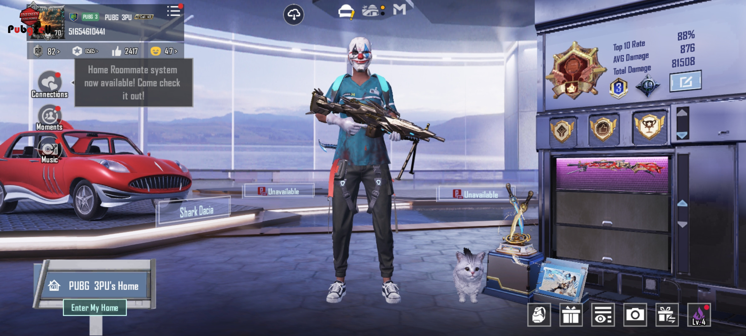 MG3گوزیلا آبگریدی Dp_28ایکسوت آبگریدی M249 الایت دوم ابگریدی M16اسکلتی آبگریدی M24 آبگریدی M762ابگریدی Groza آبگریدی Sks آبگریدی هفت لوله Thompson آبگریدی Ump آبگریدی Kar 98 آبگریدی Uzi آبگریدی و گان های الایت خلاصه با 60تا یوسی گان هارو کشیدم بیرون ست انیمه رو کامل داره بک یک علامت و ... باگی سونیک پیکان دوتا اسیکین خفن یکیش انیمه اون یکی هم سارک پیسی که شبیه لامبور گینیه اسکین جیپ آبگریدی ماکس جوکر هم داره لباس بیمارستان از دنس هاش نگم که خیلی خفنن