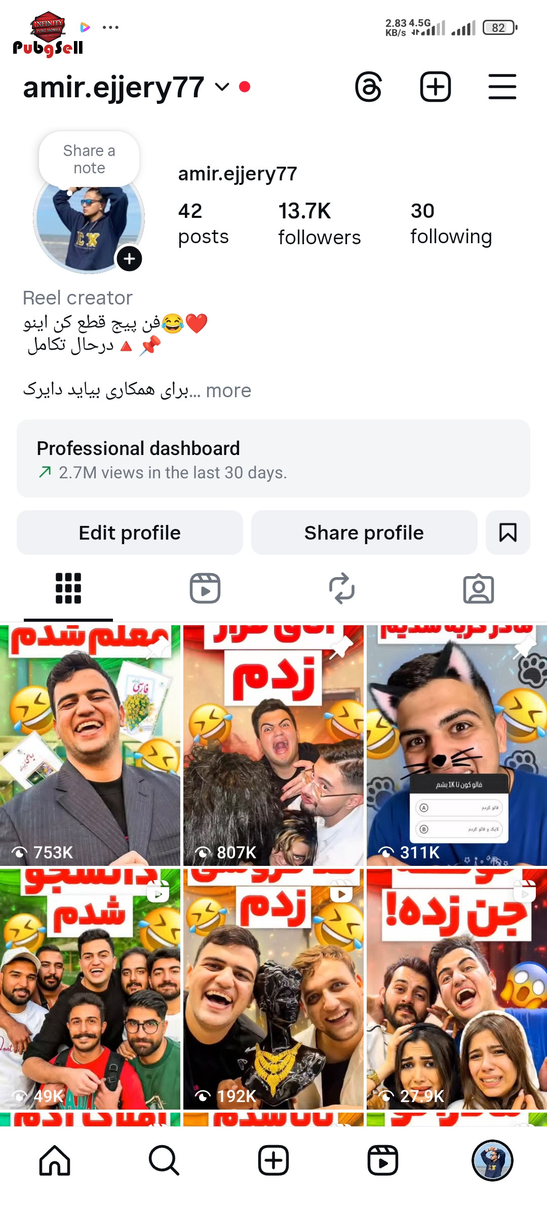 فالور تقریباً 14 کا و استوری بالا ویو کل 4میلیون همه پست ها اکسپلورره