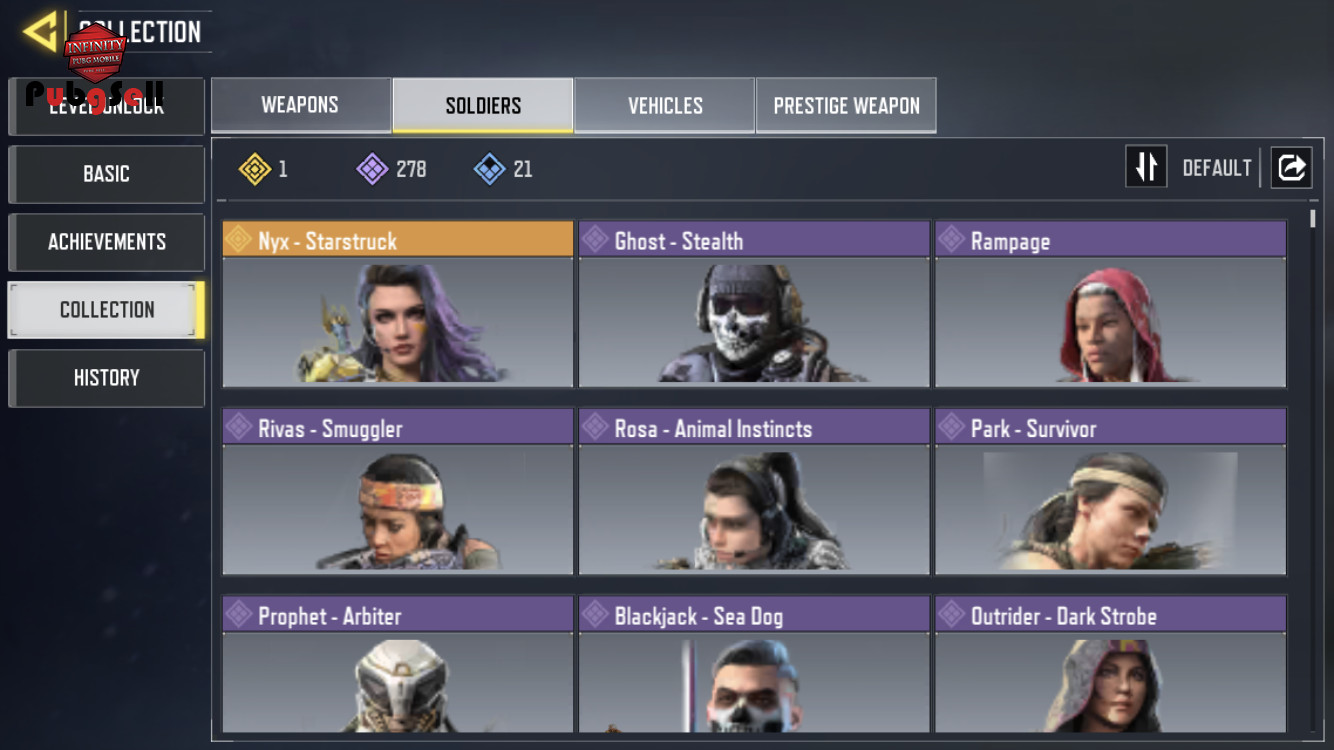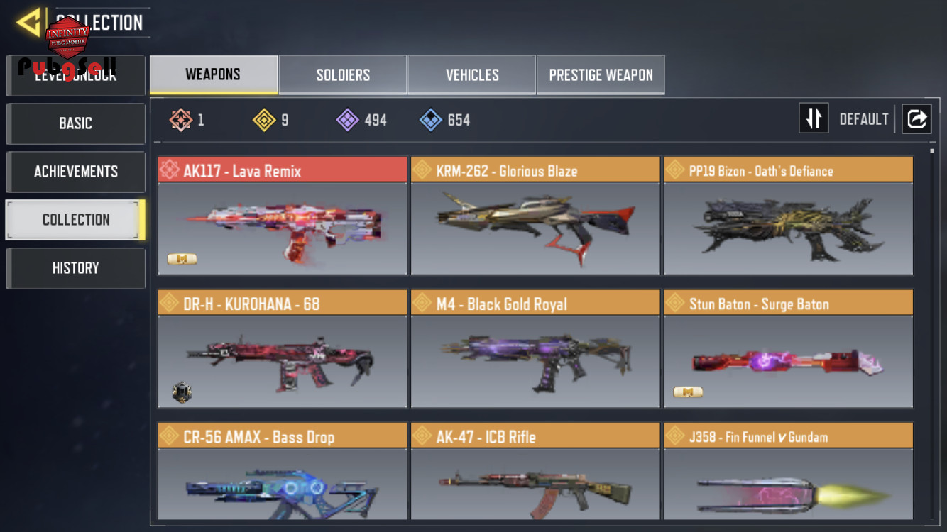 اکانت گاد دارای 9 لجند و یک متیک کریم لجند اصلی گادد کلی گان دیگه هم داره Nyx لجندری اسکین خدا
