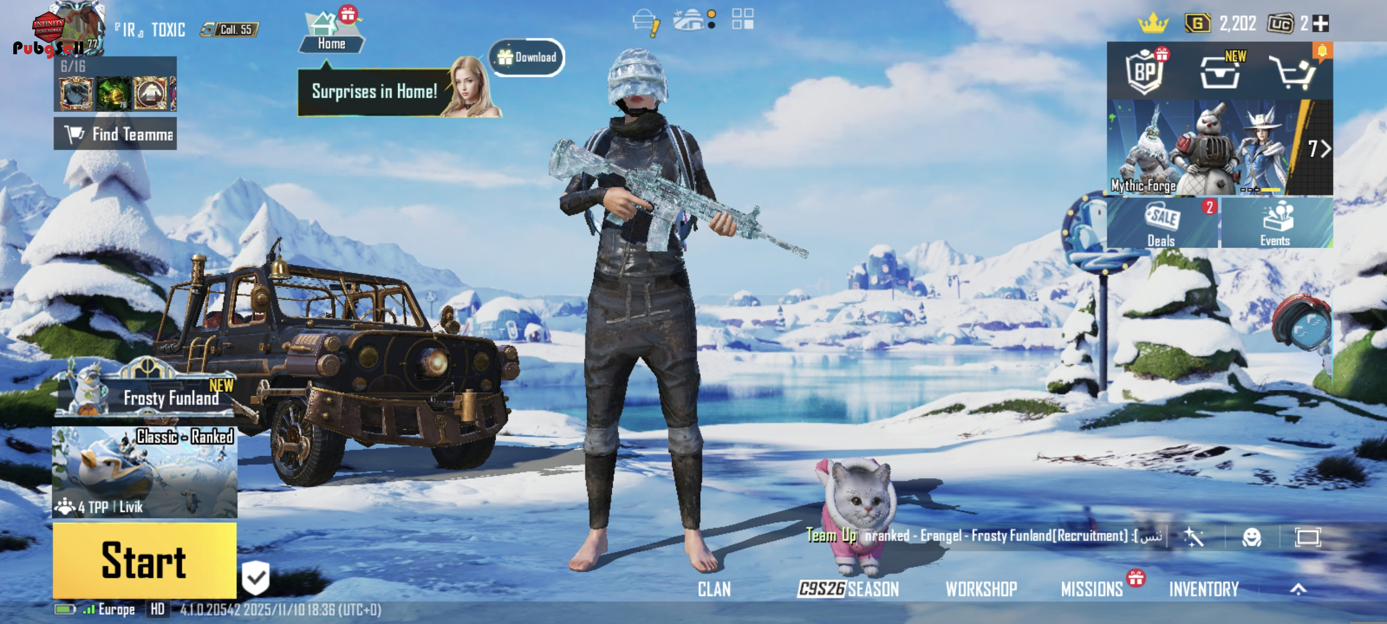 💥 لول کالکشن:55 💵 تعداد یوسی: 2 💎سیزن های الایت شده: A1تا A14 🏅سیزن های الایت مکس:همه 🏆سیزن های کانکوئر شده: نشده 🐔 محبوبيت یا چیکن: (1.65M) 🎖تعداد کل متیک:متیک فشن �قی♠️ گان های اپگریدی غیر آرپی: ویدیو ♣️ گان های اپگریدی داخل آرپی: 👘 ست های اپگریدی: 🚘 ماشین های کارتی و اپگریدی: آیتم های جدیدی اضافه شده: امفور یخی لول 6❄️ ست دلاری کامل🍀 موی خرگوشی سیزن 5❤️ ست سیزن 2 و ماسکش ❤️ دنس سیزن 2 و کلی دنس خفن دیگه تو ویدیو مشخصه❤️ ست زن فرعون ❤️ ست متیک سفید با دنسش❤️ ستای تیکن مرد و زن❤️ هلمت یخی❤️ گربه مکس 💯 روم 7 روزه و تک روزه هم خیلی داره با چیکن تو ویدیو مشخصه ❤️ ست های متیک خاص به همراه موه های متیک غیر ارپی ❤️ متیک فشن و کلی تایتل دیگه ❤️ 🗡GLACIER-M416-(LV.6) 🗡UMP45-(LV.3) 🗡UZI-(LV.3) 🗡DP-28-(LV.2) 🗡SCAR-L (LV.3) UMP1:lv3 🗡PP-19 BIZON-(LV.1)J 🗡PAN-(LV.1) 🗡THOMPSON-SMG-(LV.1) 🗡M16A4-(LV.1) 🗡MK47-(LV.1) 🗡SLR-(LV.1) 🗡CROSSBOW-(LV.1) 🗡NS2000(LV.1) 🗡TUNDRA-KNIGHT-DAGGER-(LV.1)