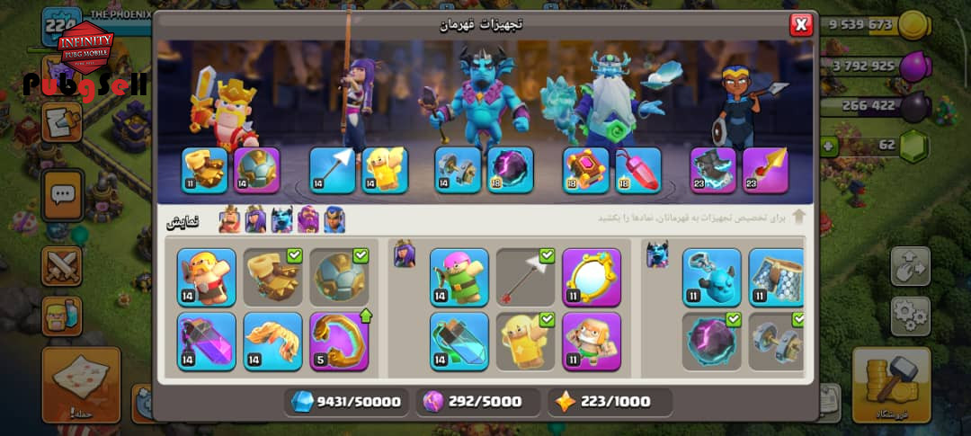 اکانت کلش تانهال 17 درحد مکث 4هیرو مکث دفاعیا نیرو تو عکسا مشخصه قیمت پایین گذاشتم وقت نمیکنم پلی بدم مبارک صاحب جدیدش♥️♥️