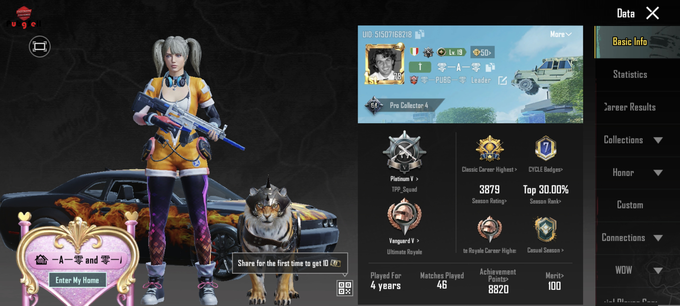 اک قدیمی سیزن 19 پلی خورده ، خیلی خرشانسه و با ده یوسی واقعاً بهترین آیتم و گان و هر چیز دیگه رو درمیاره ، دارای ست اولتیمیت خرگوش ، دوج ، پلنگ ، تاج پری ، امفور مومیایی به همراه نید و ملوتف و غیر اینا ملو و نید کیل مسیج زیاد داره که همه اینا با ده یوسی غیر امفور مومیایی که با 12 یوسی در اومد ، دارای پنج کاراکتر ، فیس سیزن چهار و دو گیس قدیمی ، کلی اسکین ماشین و گان و ست و.... در ویدیو مشاهده کنید کلی لباس و ست برای تی دی ام هم داره ، پت پلنگ مکس هستش ، در پروفایل جایگاه دو گان بازه ، و 32 گان اپگریتی داره ، امفور مسیج، ای دبل زنبور مسیج، گروزا مسیج، تامسون مکس، ام 24 فرعون مسیج، پیستول چینی مکس، گان 6 گلوله بمب انداز پایلود مکس ، اس کار ال 2 ، ام 24 کاپیتان 3 ، و بقیه در ویدیو ببینید و مهم دو اسکین جت و یک هلیکوپر هم داره و دو سیزن پرایم پلاس مکس شده و کارت آی دی ندارد، قیمت کامل خوب و خیلی پایین هستش خوب ببینید ❤️❤️