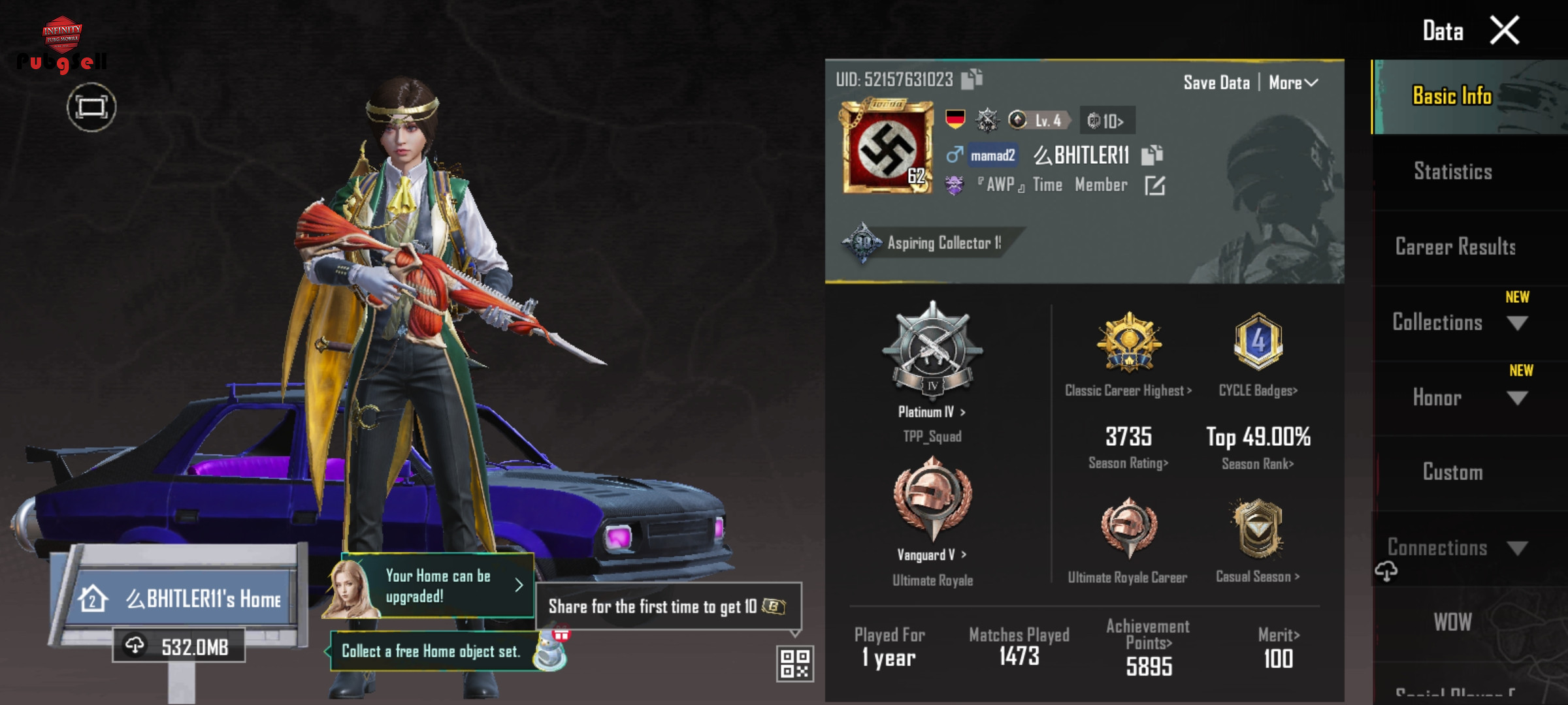 اکانت بسیار خوش شانس اسکین های خوبی هم داره اسکین های اپگردی 10تا و 3 تا الماس قرمز 6 تا مینی متریال کارت جی 9k و سیلور 4.500 تا