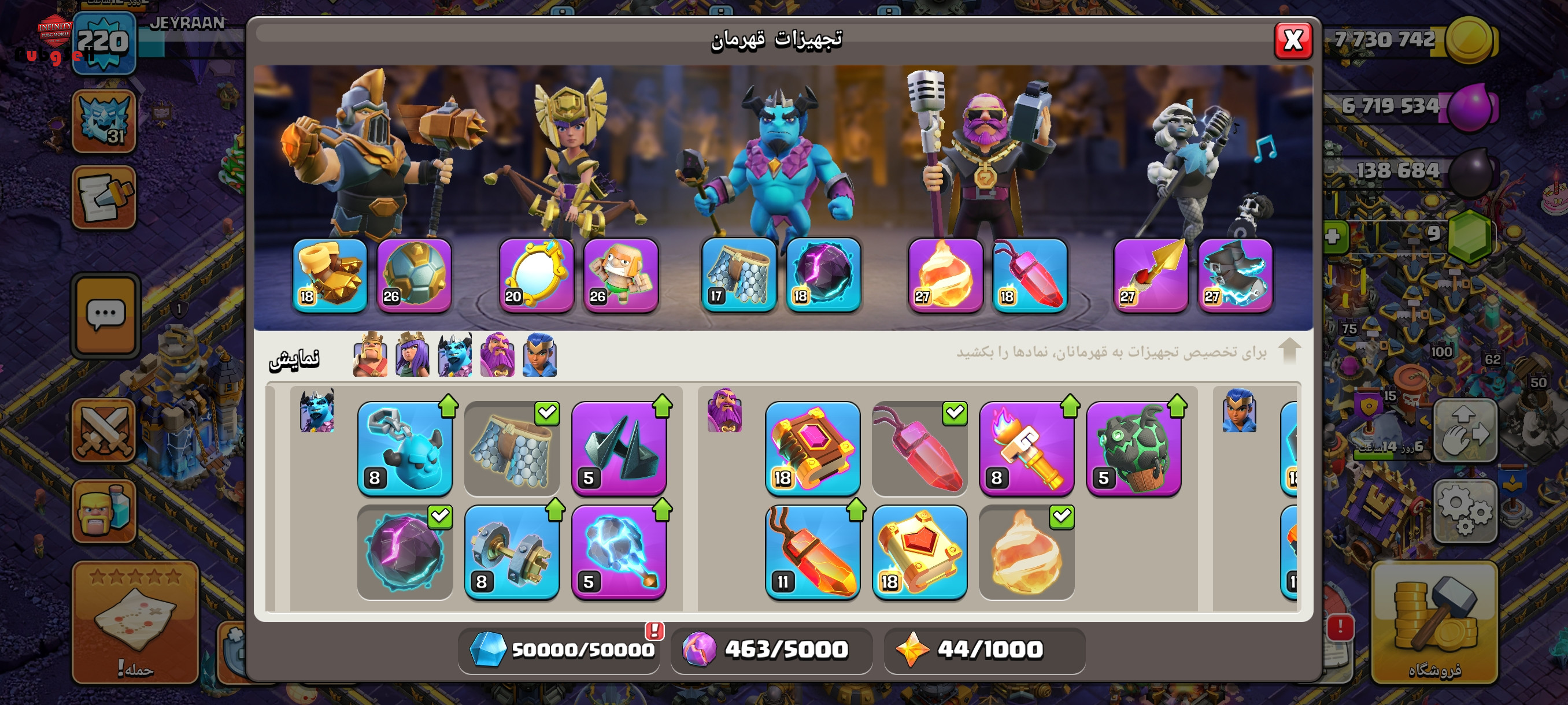 اکانت فول مکس 17 رفته 18 ... تغیر نام 500 جم .. استور باز ... منظره ده دلاری ... منظره 7 دلاری مخصوص وار .. سه هیرو مکس 17