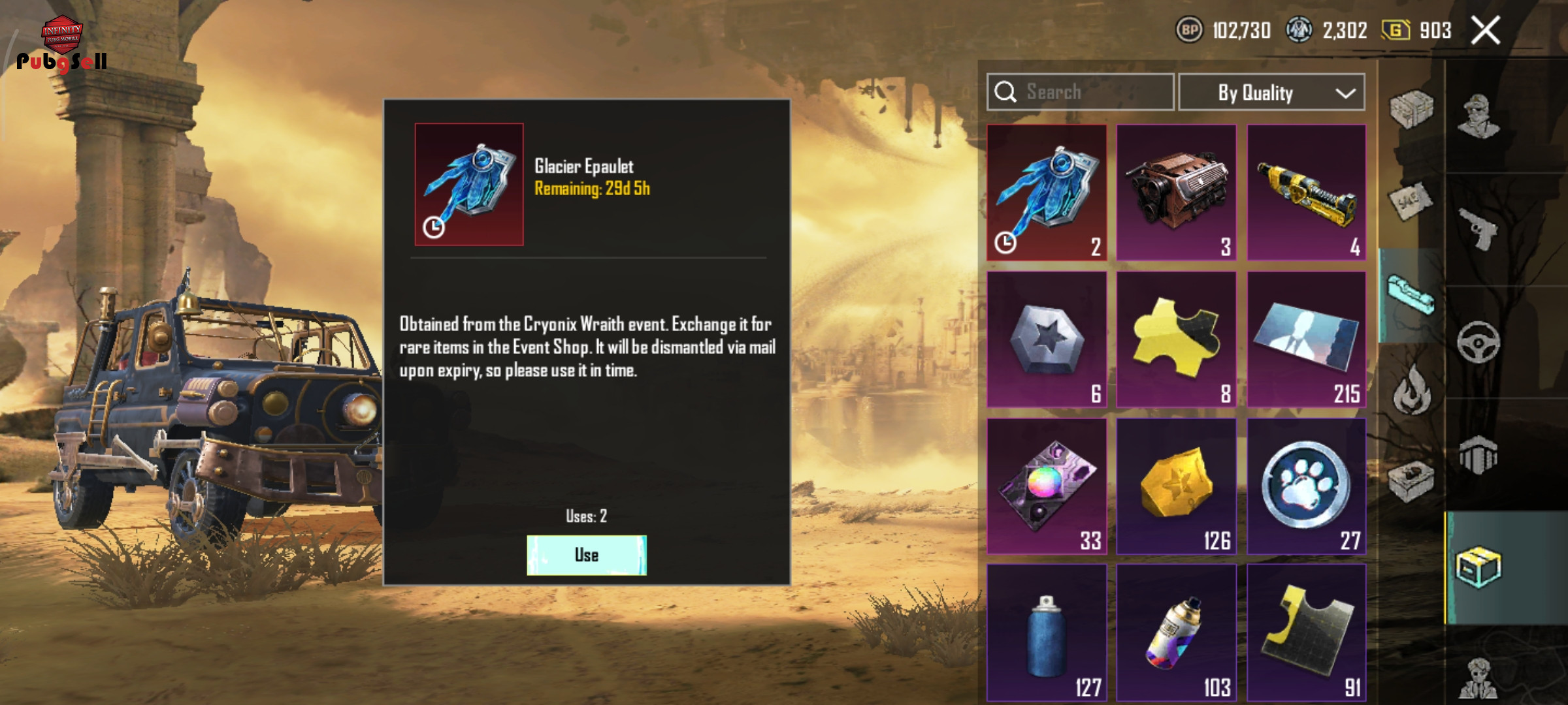 X-suit Dravion X-suit (1-Star) Anukhra X-suit (2-Star) Golden Pharaoh X-suit (1-Star) ⚠️اسلحه های غیر آرپی ✅Glacier M416 (Lv.7) ✅Valor's Requiem AWM (Lv.2) ✅Codebreakar AKM (Lv.4) ✅Blood g Bones M16A4 (Lv.1) ✅Blood Tooth Vector (Lv.1) ✅8 bit Unicorn M762 (Lv.1) ✅Ethereal Emblem UZI (Lv.1) ✅Icicle Mini14 (Lv.1) ✅Killer Tune M24 (Lv.1) ✅Titanium Shark Kar98k (Lv.1) ✅Soaring Dragon MG3 (Lv.1) ✅Shenron DP 28 (Lv.2) ✅Pumpkin Carol Groza (Lv.1) ✅Atomic Trigger S12K (Lv.1) ✅Melodic Rhythm Honey Badger (Lv.1) ✅Cuddly Nailoong Mk14 (Lv.1) ⚠️اسلحه های آرپی ✅Winter Patrol VSS (Lv.1) ✅Candied Haunter MP7 (Lv.1) ✅Loadfire Pulse MGL (Lv.1) ✅Chow Blaster SCAR-L (Lv.1) ✅Rustborn Strider NS2000 (Lv.1) ✅Patchmetal Bunny Mk47 (Lv.1) ✅Thornrose Dawn M16A4 (Lv.1) ✅Seadream Melody SLR (Lv.1) ✅Nightscape Gladiator PP-19 Bizon (Lv.1) ✅Lilac Finesse Thompson SMG (Lv.1) ✅Faerie Luster Pan (Lv.1) ✅Panthera Prime DBS (Lv.1) ✅Circus of Screams Crossbow (Lv.1) ✅Marine Evolution UMP45 (Lv.1) ✅Drakonbane Remnant Machete (Lv.1) هلمت چینی ست تفنگدار متیک فورج به همراه دنسش دوماشین ابگریدی 4 عدد متریال کامل 20 عدد جم شکسته 3 عدد متریال ماشین 3 عدد جم التیمت به همراه 20 عدد مینی جم التیمت اخر چهار تا جم میشه 100عدد کارت طلایی 6عدد متریال ایکسویت به همراه 6 مینی 126 عدد جم طلایی ایکسویت 10 عدد روم 7روزه ، 23 عدد 1 روزه A16رو هم الایت کردم ارپی100است