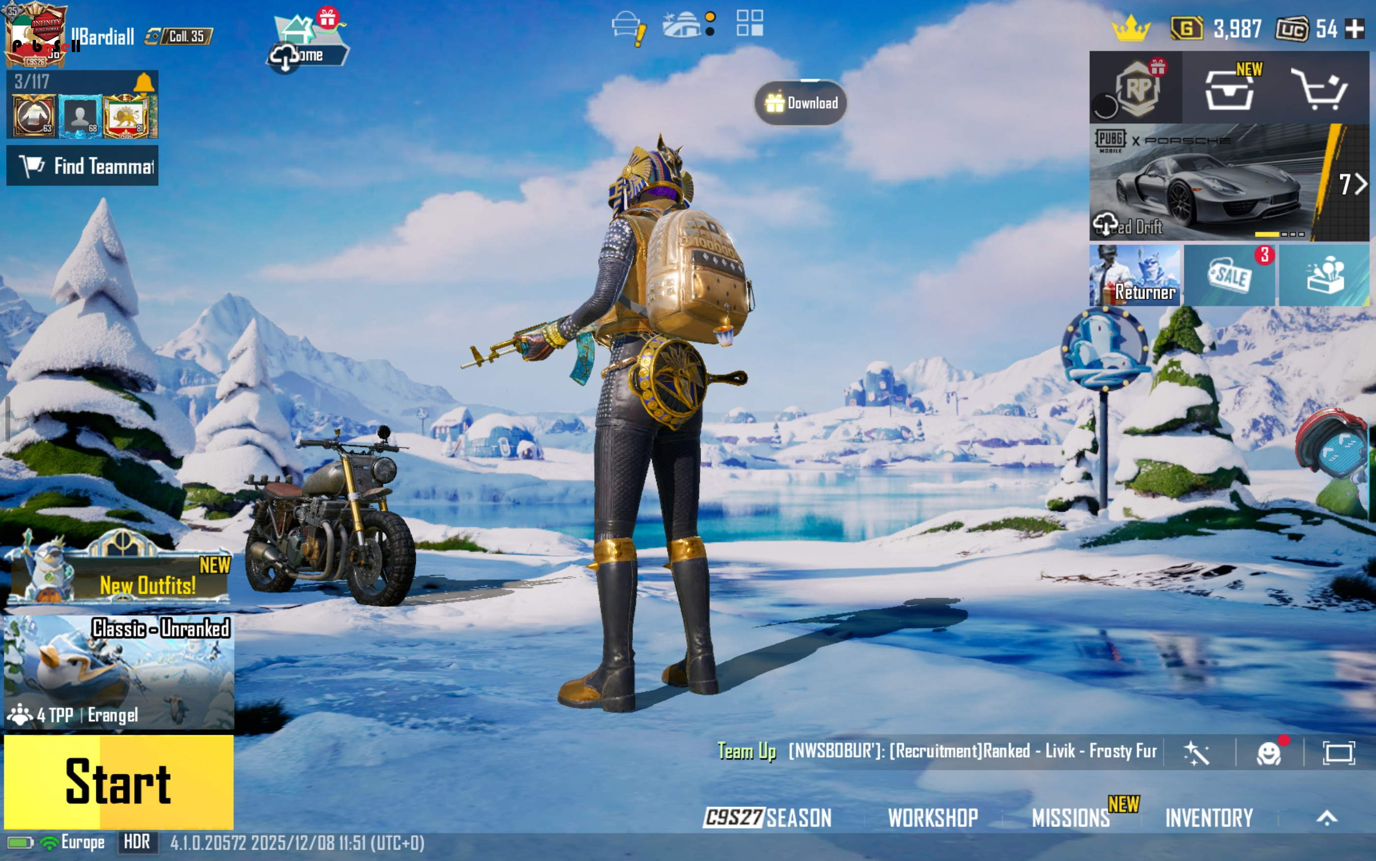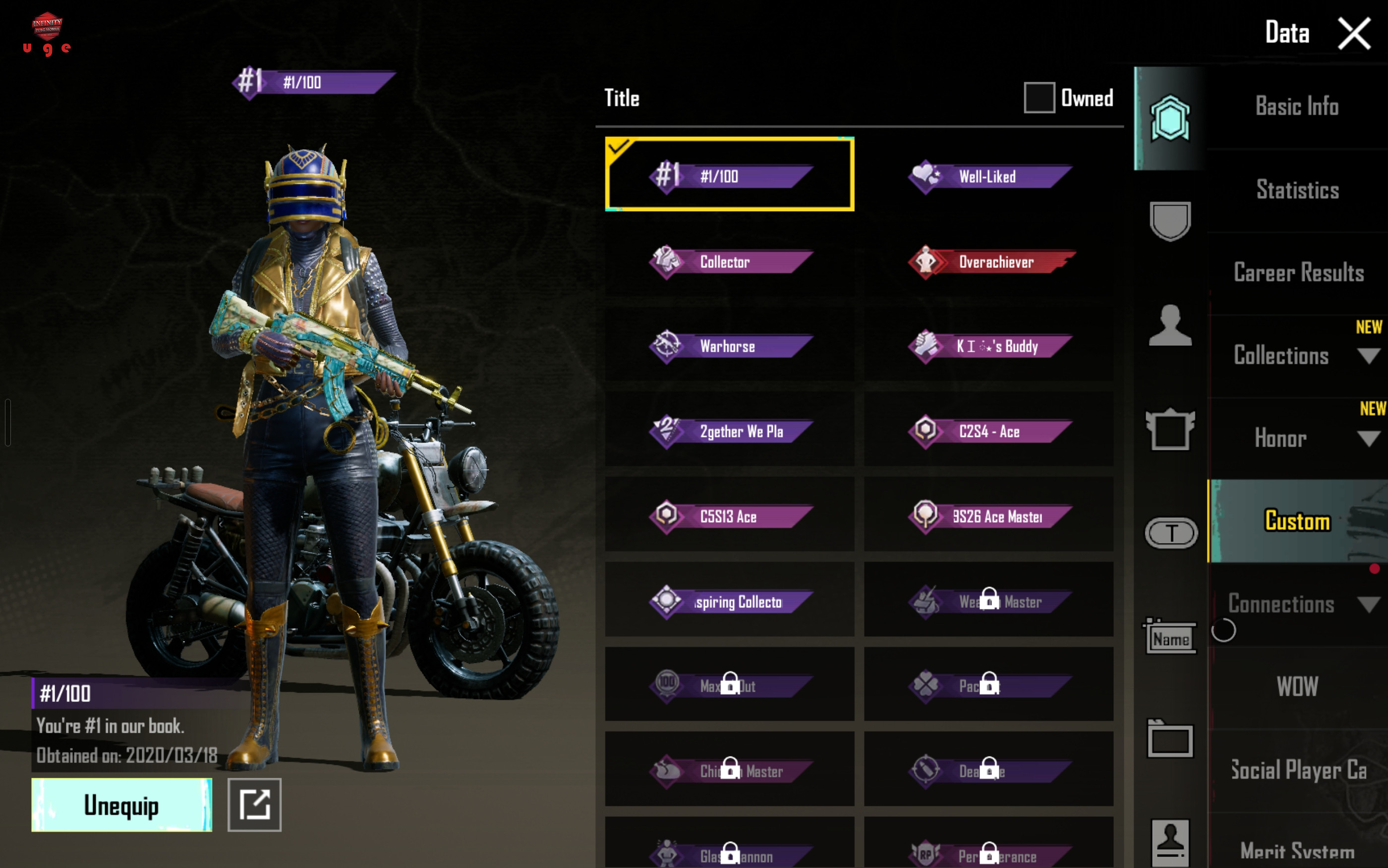 ست: 85تا، 1میتیک، 47لجند هلمت: 8 تا، 5لجند کلاه: 67تا، 2تا میتیک، 16 تا لجند عینک: 19 تا، 9 تا لجند ماسک: 70 تا، 12لجند پیرهن: 66تا، 2تالجند بکپک: 9تا، 1میتیک،3تالجند آویز: 6تا،4تاش لجند شلوار: 39تا کفش: 24تا اسکین گان: 2تا اپیک ام16 5تا اسکارل 2تالجند یکی اپیک گروزا 4تا ایوجی 1لجند 1اپیک کیوبی زد 1لجند ام769 1لجند امکی 47 1اپیک هانی بدجر 1اپیک کار98 4تا ام24 ک 3تاش لجند 1اپیک وین 94 1اپیک اس کی اس 1لجند وین94 2تا امکی14 1لجند 1لجند اس ال ار 2لجند کیو بی یو 1اپیک یوزی 1اپیک یو ام پی 1 اپیک ویکتور 1لجند شات گان 5لول 2تا اپیک اس 12کی 2تا دی بی اس یکیش لجند 1اپیک ام249 1لجند ام جی 3 1اپیک پی92 1اپیک پی1911 4تا پن 1لجند 2تا قمه 1لجند 2تاموتور 1لجند 1موتور دریل دیکسون واکینگ دد 3تا اپیک باگی 1اپیک مینی بوس دنس: 48 تا، 2میتیک، 2لجند چتر: 27 تا، 1لجند هواپیما: 1لجند نارنجک: 2تا لجند اسموک: 3تا اپیک مولوتوو: 1لجند 1لجند متن ام وی پی 3تا لجند دنس ام وی پی ارنال (درکل 4تا) کارکتر: امیلی، ویکتور، سارا، انا (4تا) تایتل 11تا لول اکانت: 66 تعداد سیزن الایت شده: 1عدد (سیزن 13 مکس) شروع اکانت: سیزن 2 اجیومنت: 5090 لایک: 1700 تعداد یوسی 54 تعداد سیلور 3000 قیمت شد 4500 ولی من میدم 3500 برین لذتشو ببرین