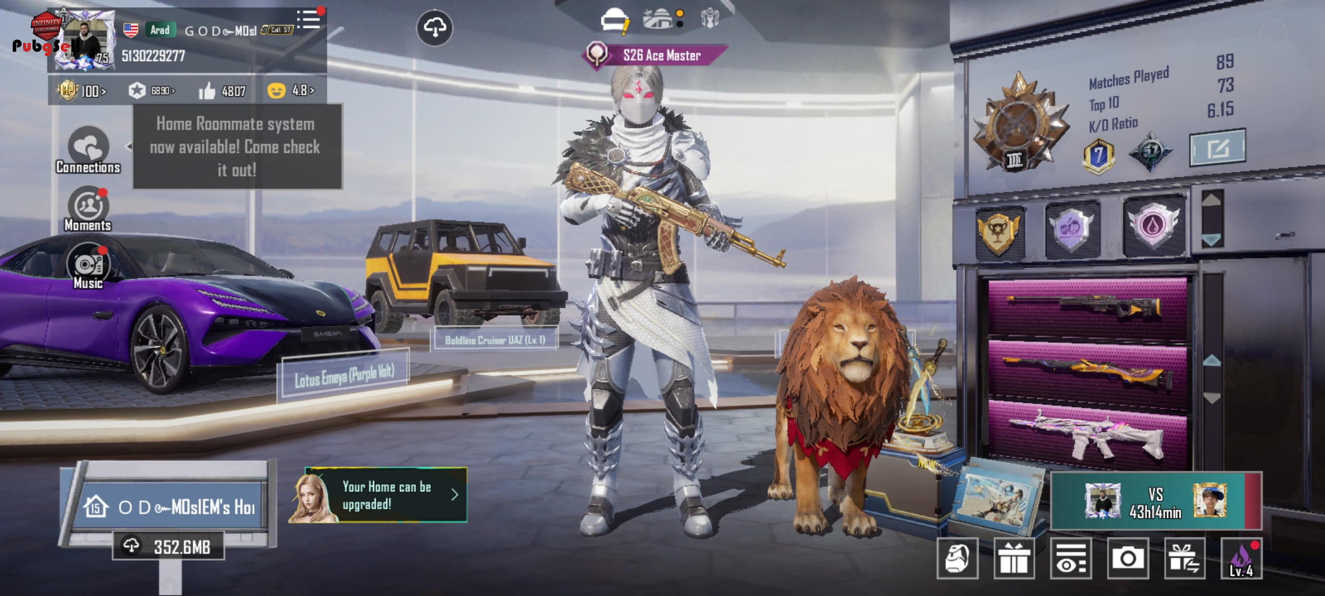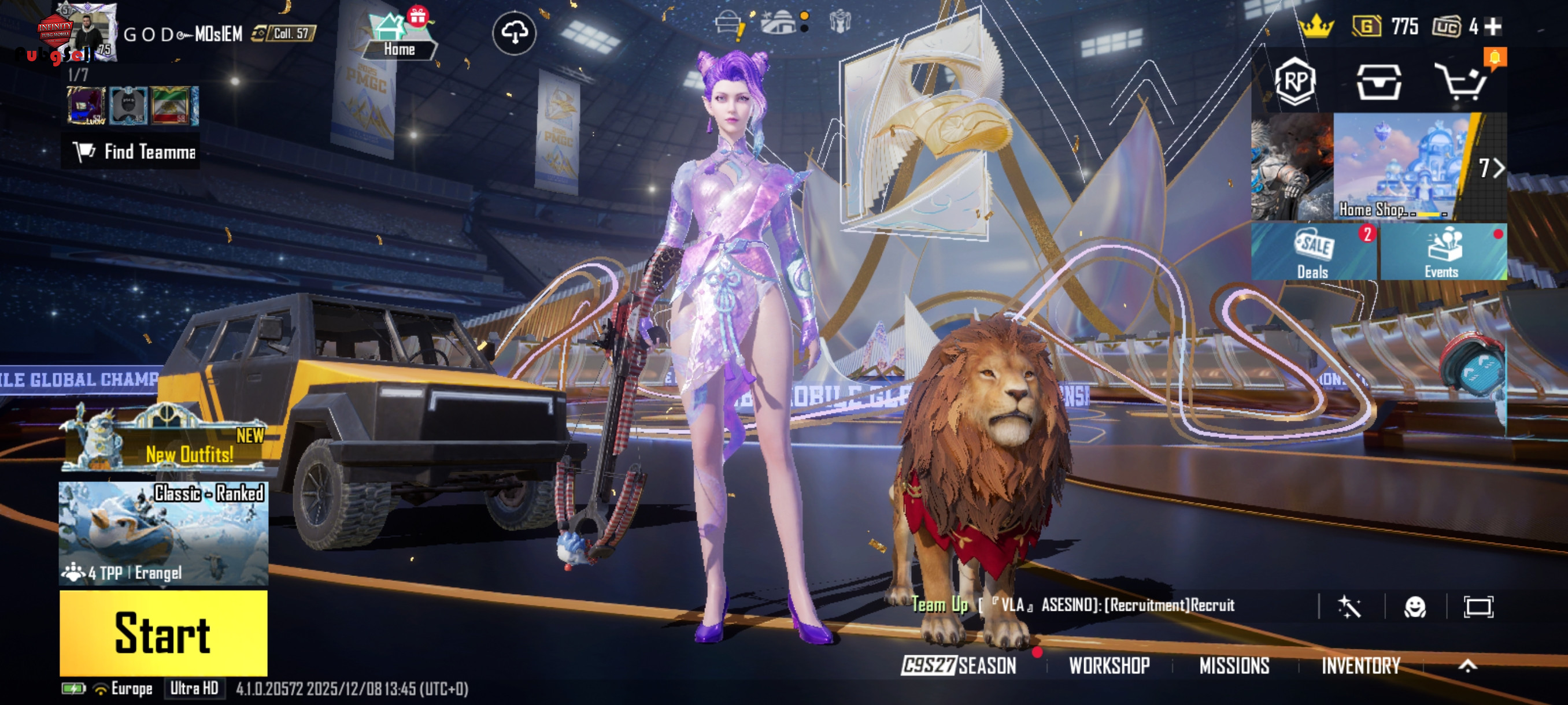 سلام دورود به دوستان عزیزم این اکانت از سیزن 2شروع فعالیت کرده واز سیزن a3تا a16الایت شوده و الایت پلاس با الایت پرایم 61 روزه یک لباس اولتیمت 10لباس متیم غیرارپی داره 16گان ابگریتی غیر ارپی داره 9کیل مسیج 5تالول2 داره یک ماشین لوتوس بنفش جیپ ابگریتی لول1اکانت خوبی و دیگه همین ویدویشو میرارم نگاه کنیید ممنون میشم