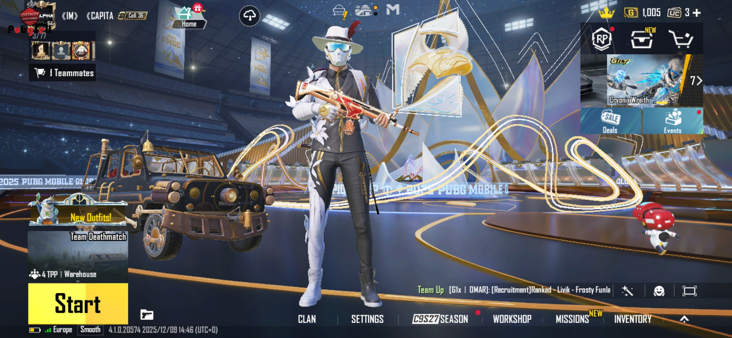 اکانت دارایه ده متیک پنج گان آبگریدی کاپ ایسمستر درسیزن های قبلیش دارایه یه کلن لوله سه یک سیزن الایت چیکن بتل رنک 5 گان هایه کامل از هرگان یه اسکین داره