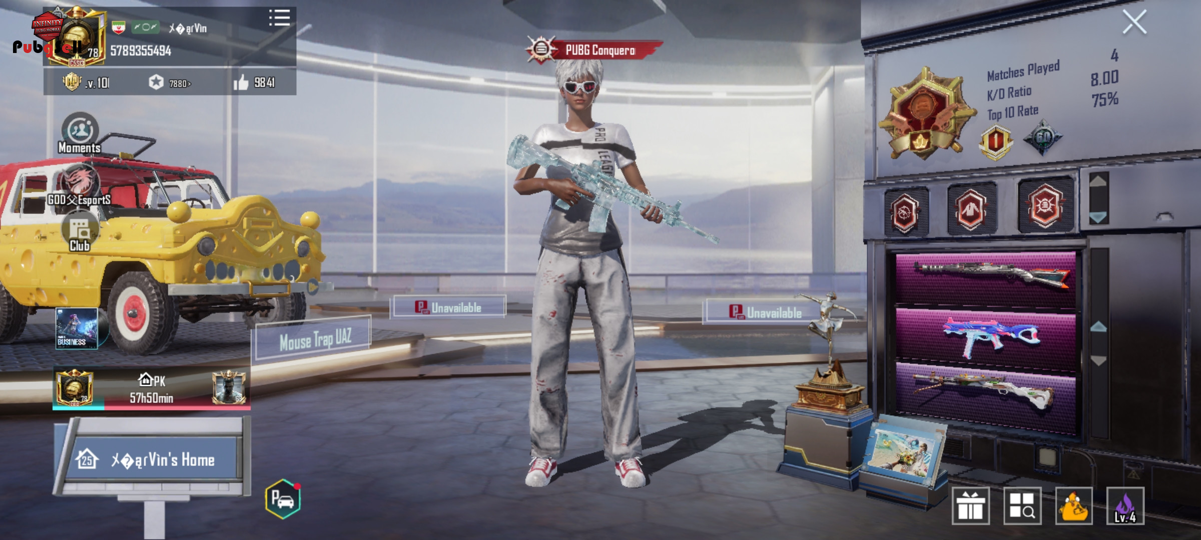 امفور یخی 6 داره🥶 تقریبا 100 تا متیک یو ام پی ارپی مکس M24 لول4 تامسون ارپی رو همین حالا میتونید کیل مسیج کنید دنس های خیلی قدیمی هم داره با 34 تا الایت🥶 عینک التیمیت هم داره که خیلی کمیابه😈 ماسک جوکر سیزن 2👺 کانک سیزن قدیم🔥 کالکشن60😱 با یک عالمه ست تی دی امی❤️🔥 6 تا کاراکتر 👍