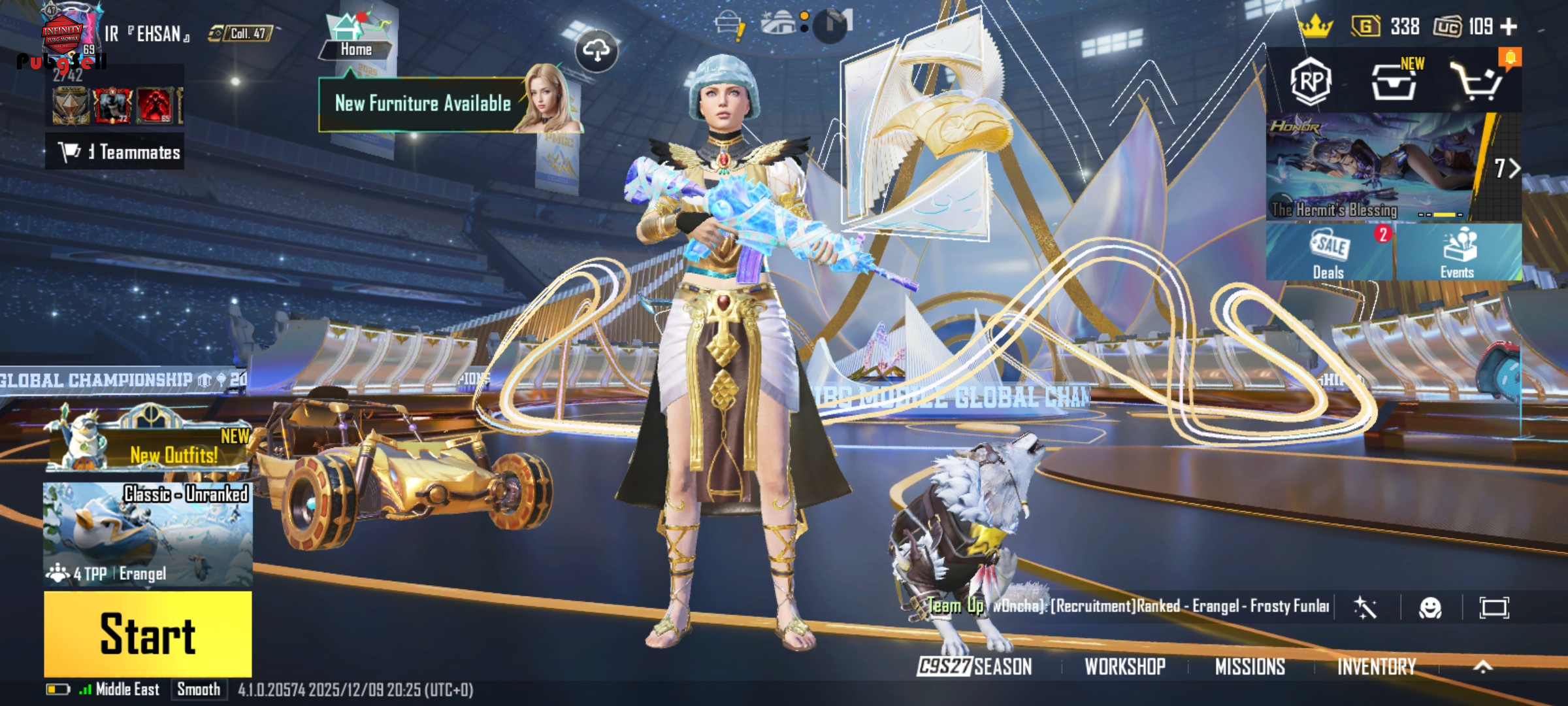 🔴4متریال داره 🔴14اپگریدی غیر ارپی و 8اپکریدی ارپی 🔴دارای فیس سیزن 3 خریداری شده توسط 1200 یوسی 🔴هلمت یخی داره 🔴3متریال ماشین داره 🔴1عدد جم متیک فورج 🔴دارای پک کامل گودزیلا(کیف،2ست لباس،قمه،هلمت گودزیلا...) 🔴و لباس متیک مصر رو داره 💯 🔴ماسک سیزن 3 🔴دنس سیزن 2 داره 🔴20عدد دنس متیک داره 🔴هواپیما سیزن 6داره 🔴نارنجک کیل مسیج امفور مومیایی داره 🔴2جایگاه ماشین خریداری شده و داره 🔴3جایگاه تفنگ داره 🔴لول خانه27 🔴دارای هلیکوپتر رنگی است 🔴لول چیکن 5 است(بخش صورتی است) 👌اکانت گاد گاد👌