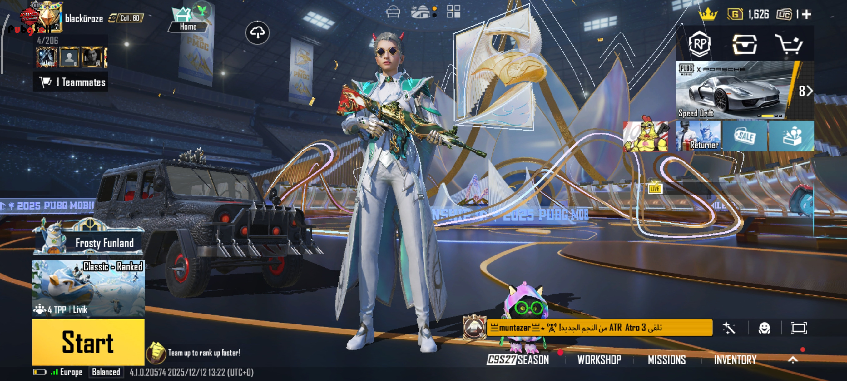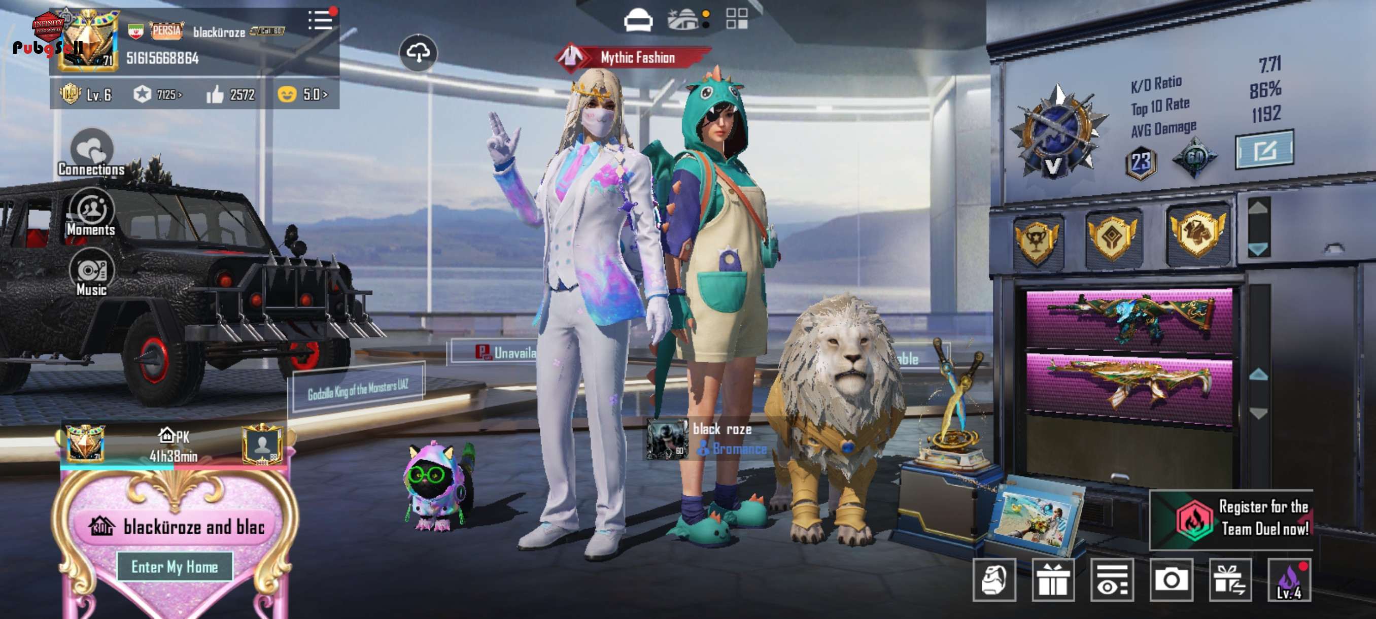 امفور تایگر لول 4 ای کی التیمت لول 4 یوزی ثور لول 4 ام24 فرعون لول 4 AWM ایکسوت لول 4 mg3 لول4 P90فرعون مکس گروزا گودزیلا لول 4 یو ام پی سبز لول 4 قمه گوزیلا مکس اسکالر ارپی مکس اکثرشون نید و مولی رو دارن پت گربه با اکسین پت شیر با اسکین پت گربه فرعون پت خرس 24 تا متیک غیر ارپی بک پک التیمیت بک پک فرعون 3 تا جم اولتیمیت نزدیک 700 پوینت لاکی اسپین 227 تا پوینت ماشین 100 و خوردهای باکس کلاسیک بیشتر از 50 تا باکس پرمیوم ایکسوت سیلوانوس لول 4 فیوره انوخرا یخی پوسایدون کاراکتر کارلو چنتا گان غیر ارپی هم هس ک کیل مسیج نکردم تو ویدیو مشخصه هوم لول 30 ولی ایتم خیلی بیشتر داره ک دیگه نذاشتم(متیک هم خیلی داره) لباس های لجند ک با یوسی گرفتم هم زیاد داره بقیه چیزا تو ویدیو مشخصه بیشتر از 40 میلیون خرج اکانت کردم...