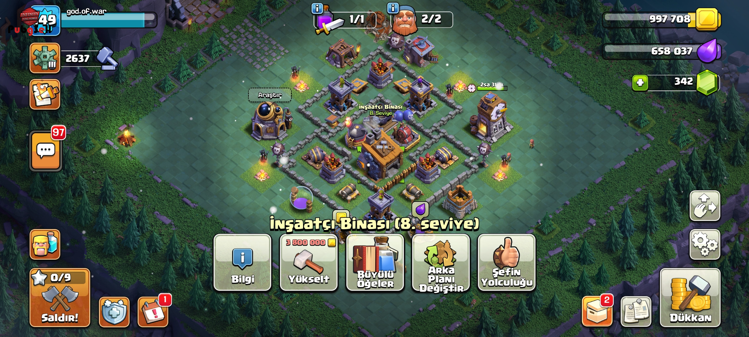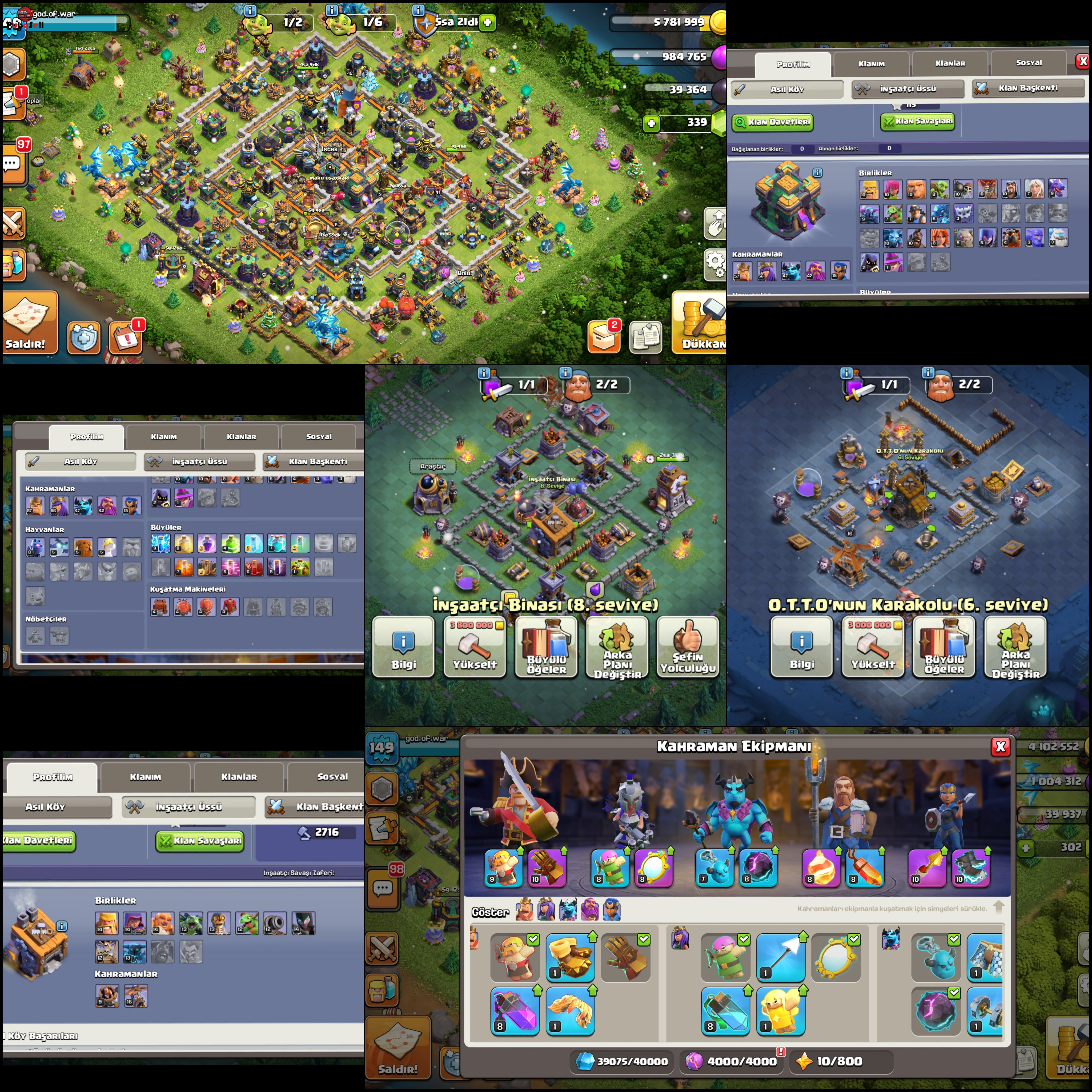 ⏫ لول :149 🏠 تانهال:14 💎 تعداد جم:339 👷 تعداد کارگر:5 🔗 لينک شده:سوپرسل 📝 قابلیت تغییر نام:دارد ⚜توضیحات: 🤴 کینگ بربر:57 👸 آرچر کویین: 56 🧝♂ گرند واردن:42 🦸♂هیروی سلطنتی: 15 🧞مینیون:41