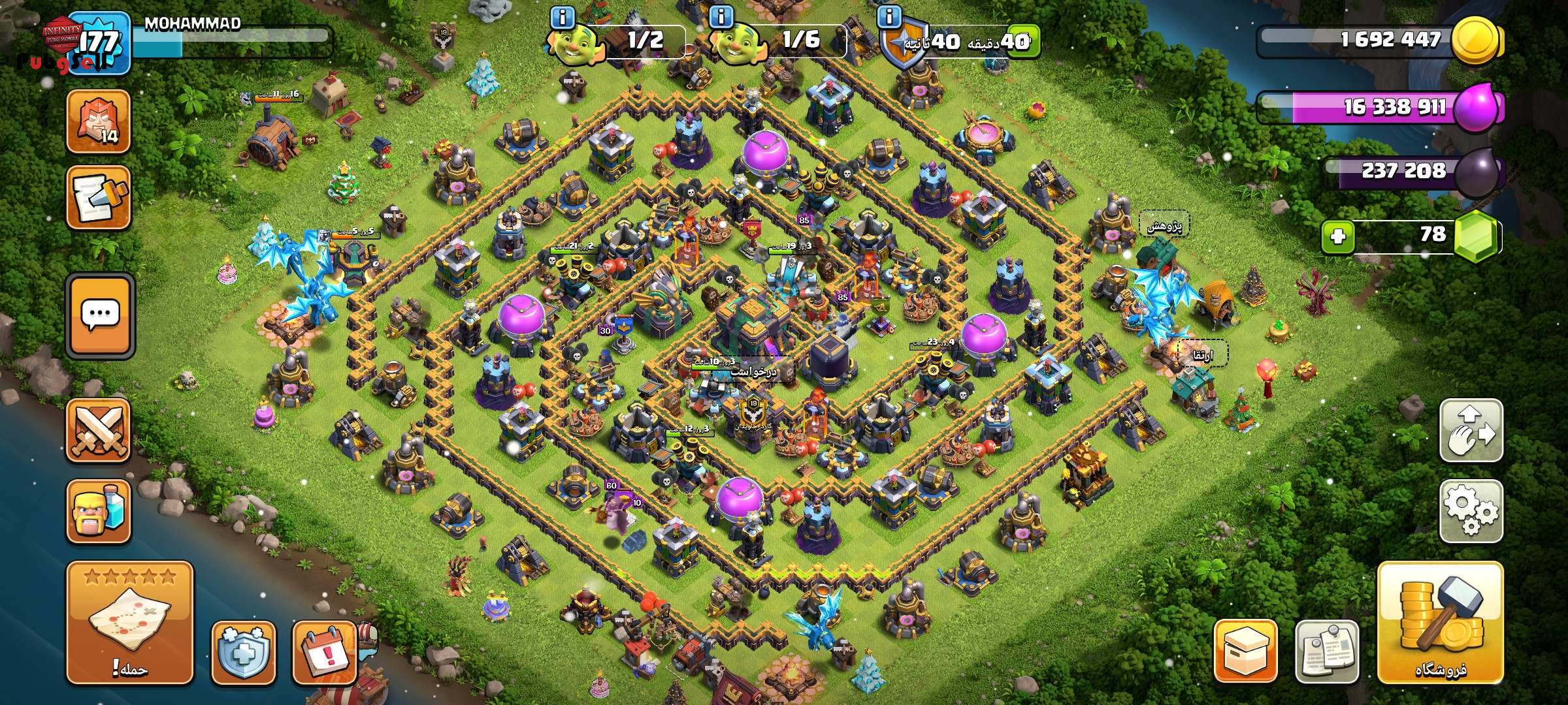 اکانت 14 تقریباً مکس با کلن لول 19 بهترین قیمت گذاشتم فروش بره مفت