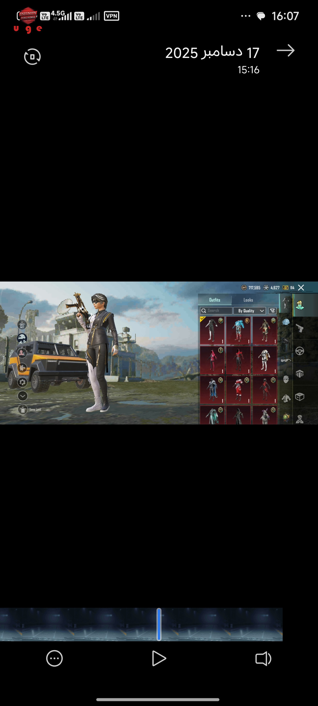 شانس اکانت بسیار بالاست لول 68 کالکشن 46 ست کت و شلوار سیزن 17 لباس سیزن 20 38 لباس متیک به همراه یک پک متیک کفش سیزن 2 دارای ست های TDM 13گان اپگریدی UMPانوخرا به همراه مولوتوف دارای ماشین اپگریدی بقیه چیز ها توی ویدئو هست...