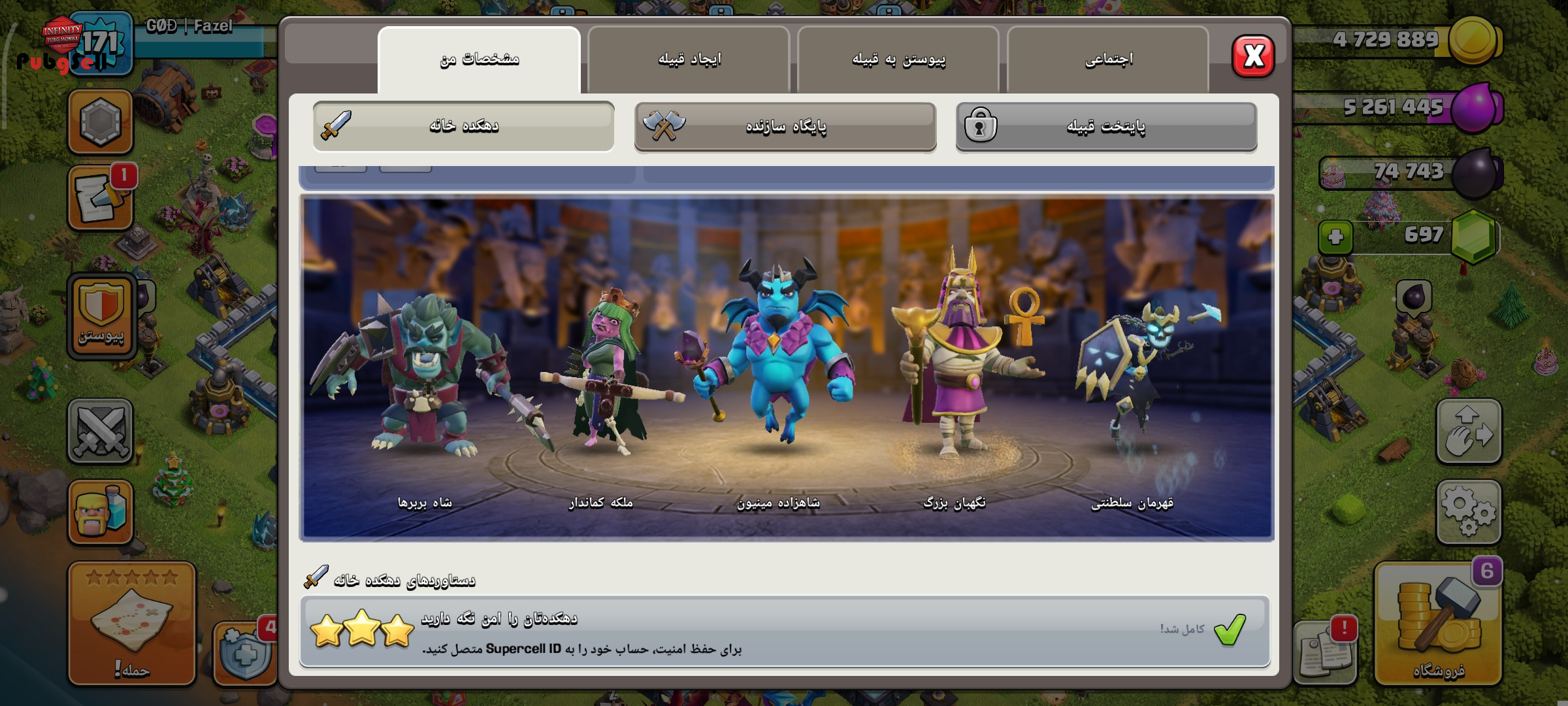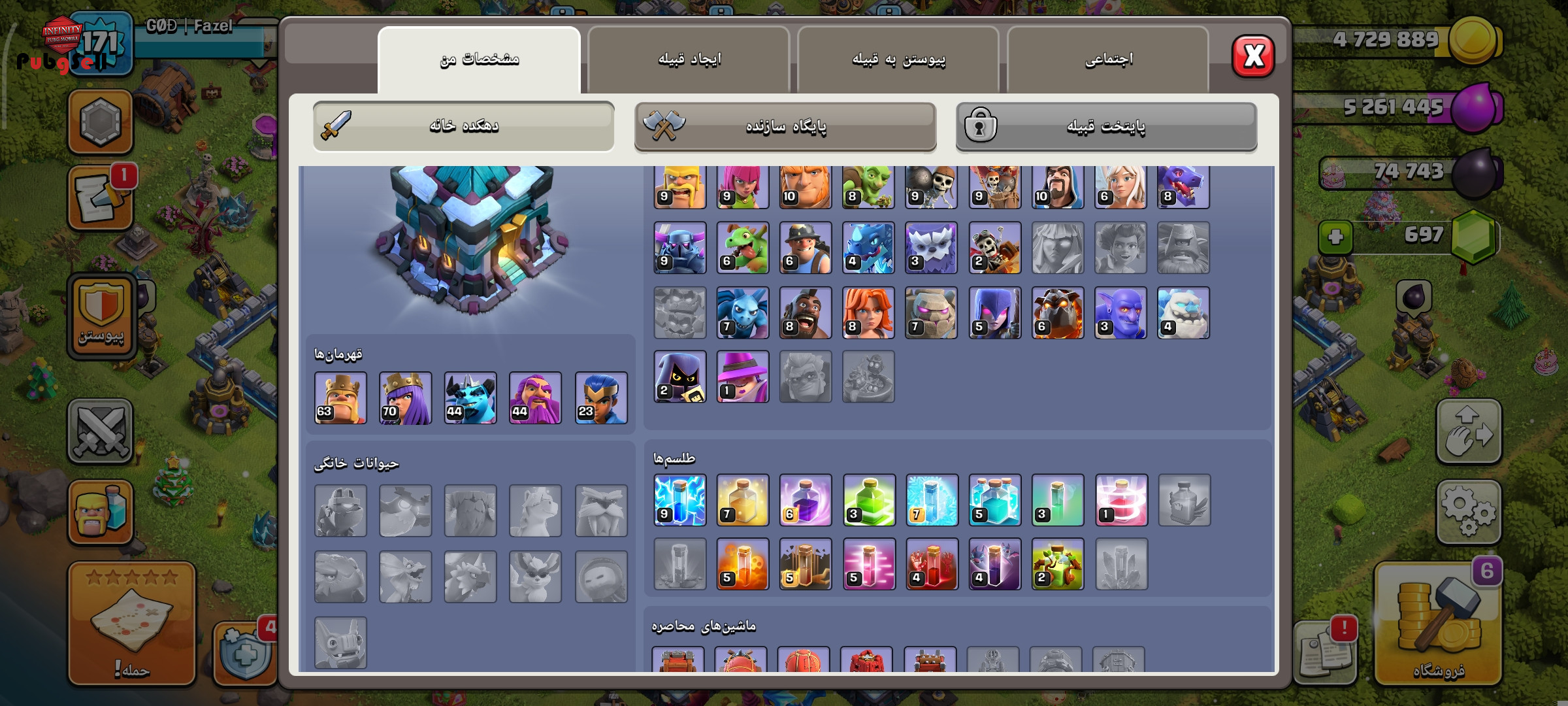 با سلام اکانت حرفه ای فول فقط دیوار مونده از هر قهرمان هم 5 تا اسکین دارم