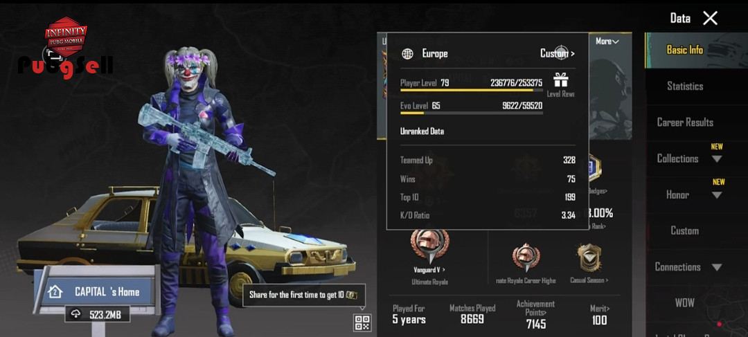 امفور یخی لول 6 ام 24لول 4 یوزی لول 4 ام 700 لول 2 ویکتور لول 1 ام 24 لول 1 کار نود 8لول 1 ام کا 14 لول 1 و گان های ارپی رو داره 90تا متیک لباس جوکر 4تا مت داره 3تا متیک فورج 4تا اسکین جیپ 3تا پیکان 7تا باگی کالکشن 61