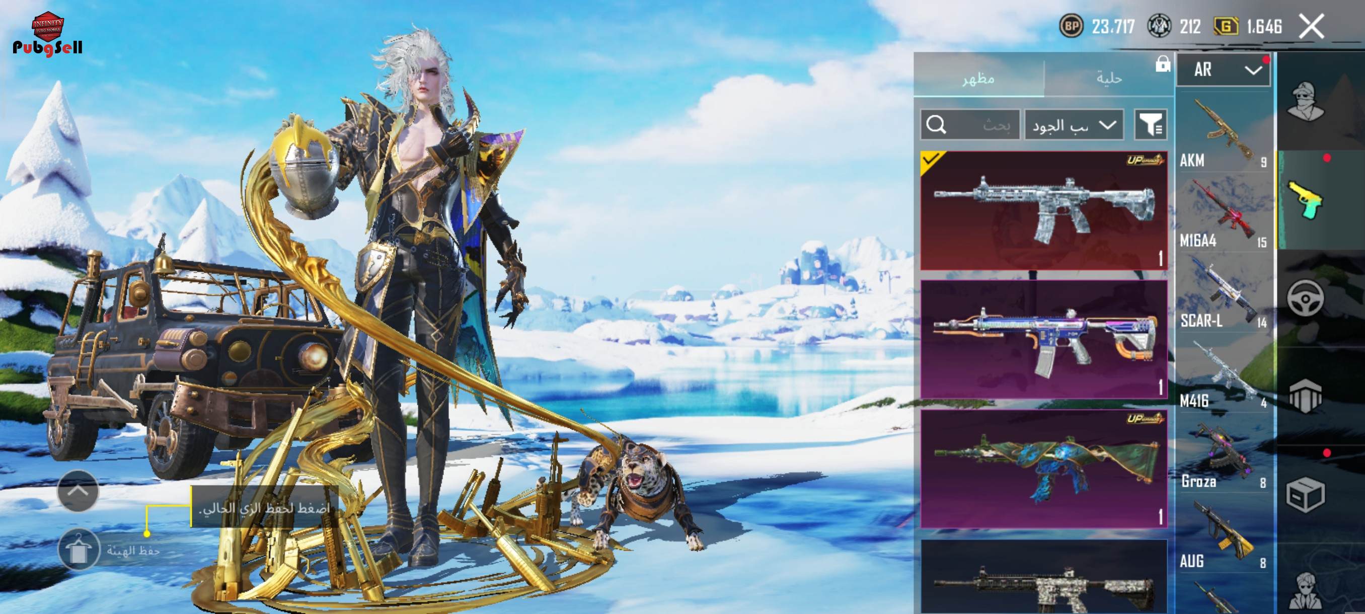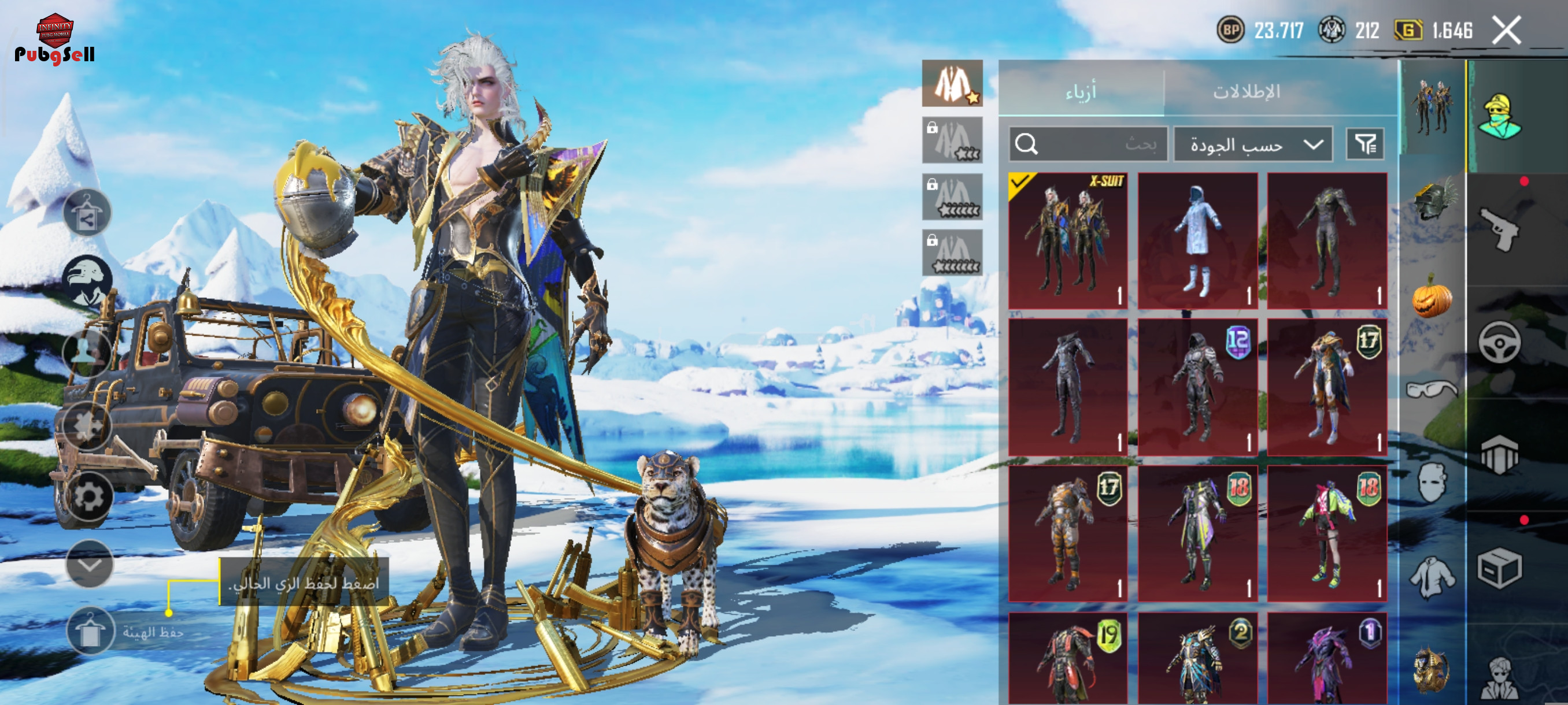 اکانت فول اسکین قدیم و جدید اکانت دارای امفور یخی مکس و جیپ لامبورگینی و پت پلنگ و جیپ سیزون ده دارای لباس ست اکس لول دو و 70تا سنگ طلا و 2متریال گان و 4مینی متریال و 1000تا یوسی که در تصاویر و فیدیو مشخصه فیلم کامل ببینید زیر قیمت گذاشتم چون نیاز به پولم