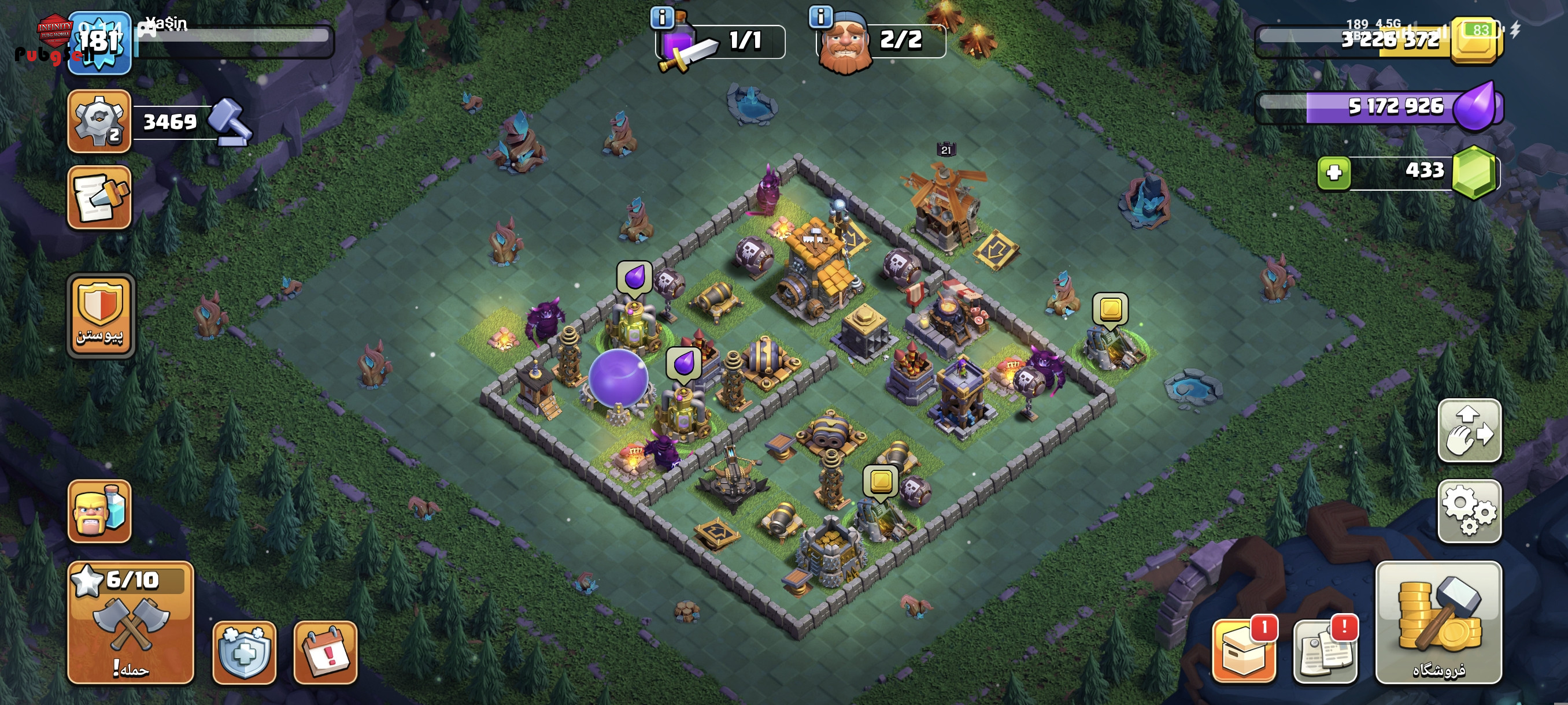 اکانت کلش لول 181 تان13 تقریبا مکس فقط دیوار مونده چندتایی با یکم هیرو